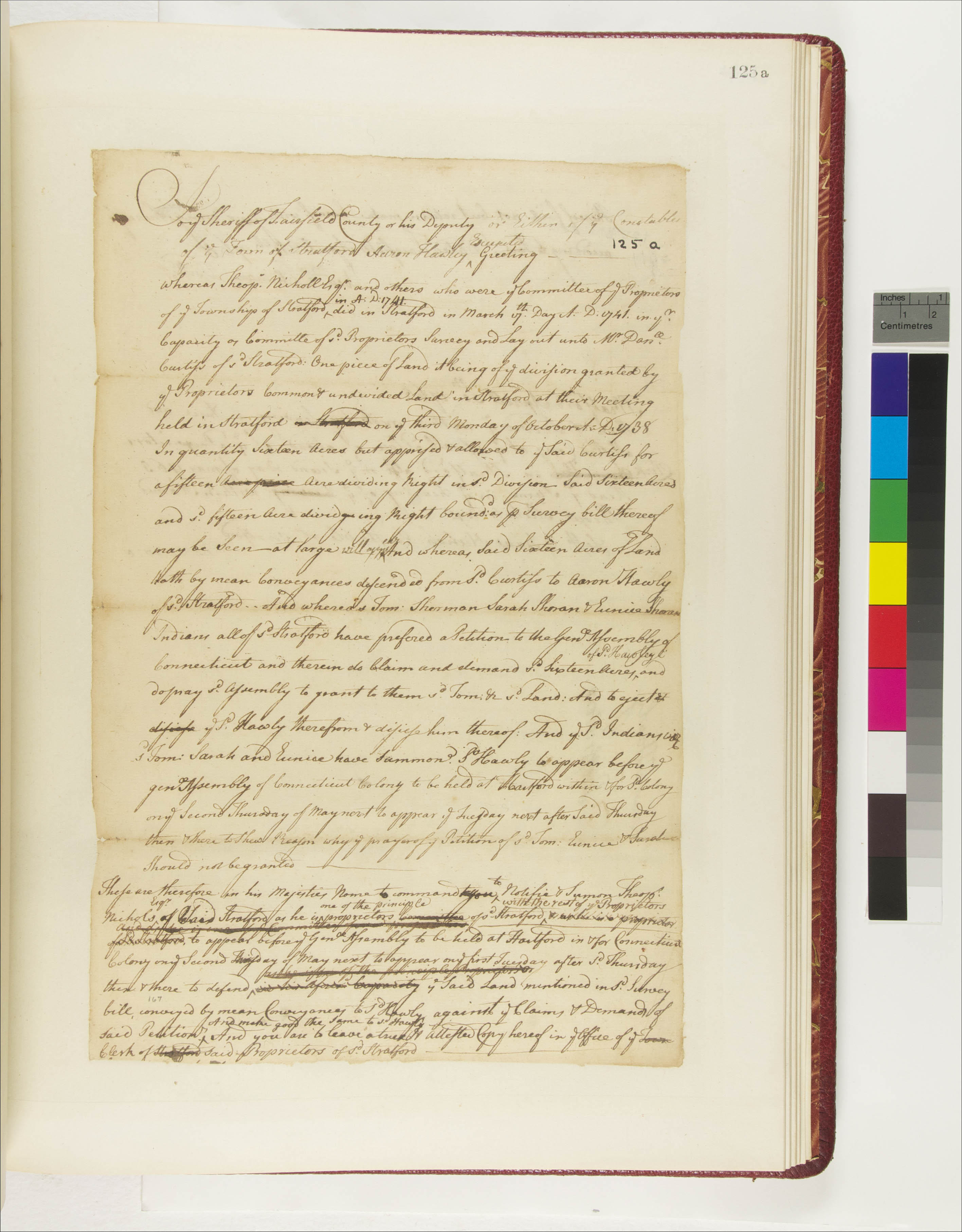 Government -- Colonial -- Colony of Connecticut -- General Assembly; Government -- Tribal -- Paugusset, Golden Hill; Land -- Complaints -- Controversies; Land -- Conveyances -- Deed/Title; Land -- Description -- Boundaries; Land -- Reservation/Reserve -- Paugusset -- Golden Hill; Law -- Civil Actions -- Case Names -- Aaron Hawley v. Proprietors of Town of Stratford; Law -- Civil Actions -- Property Issues -- Title/Ownership; Relations -- Colonial Affairs; Relations -- Tribal Affairs; Tribes/Communities -- Paugusset -- Golden Hill; YIPP -- Colony of Connecticut Collection, 1603-1783