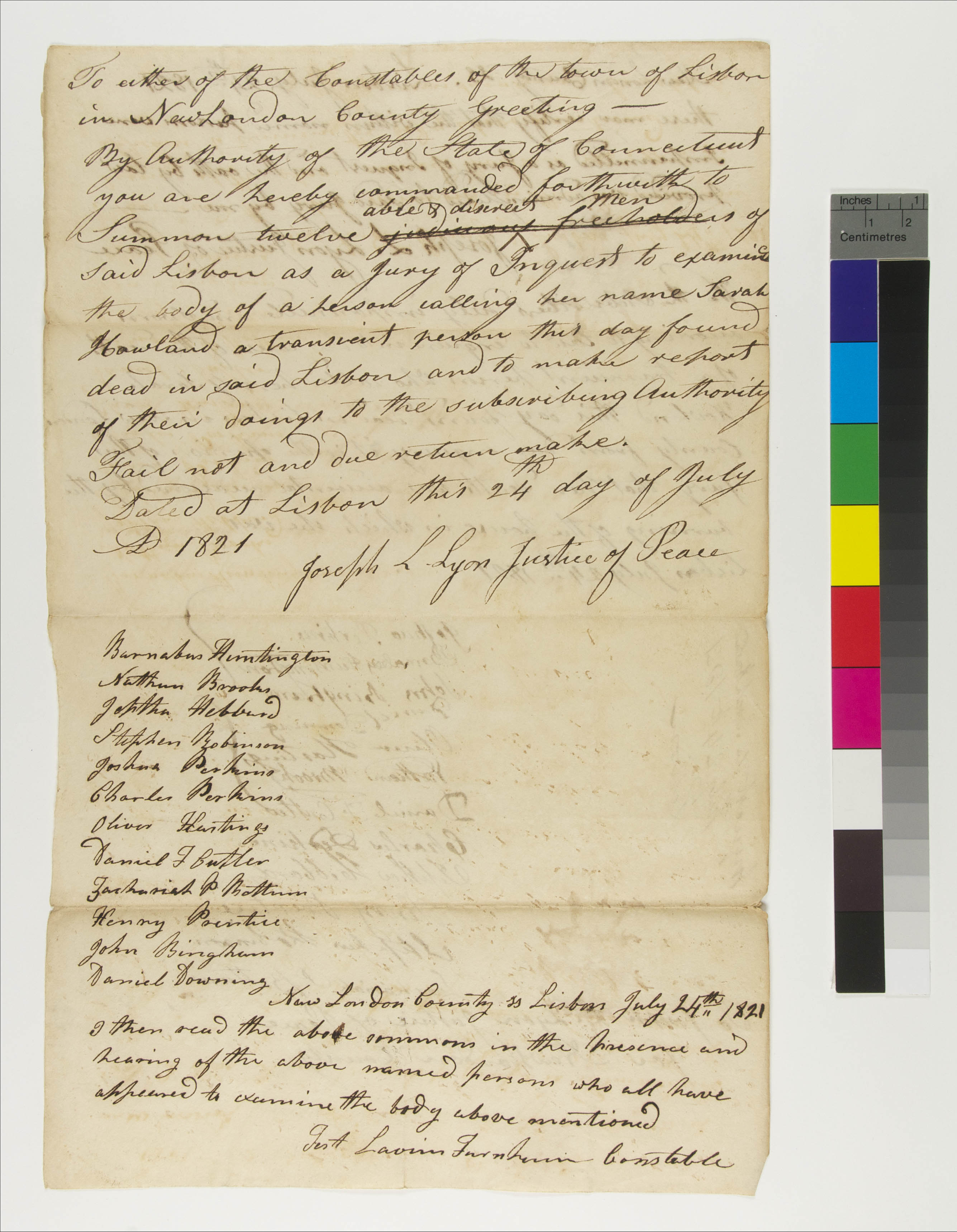 Summons to Examine the Body of Sarah Howland
