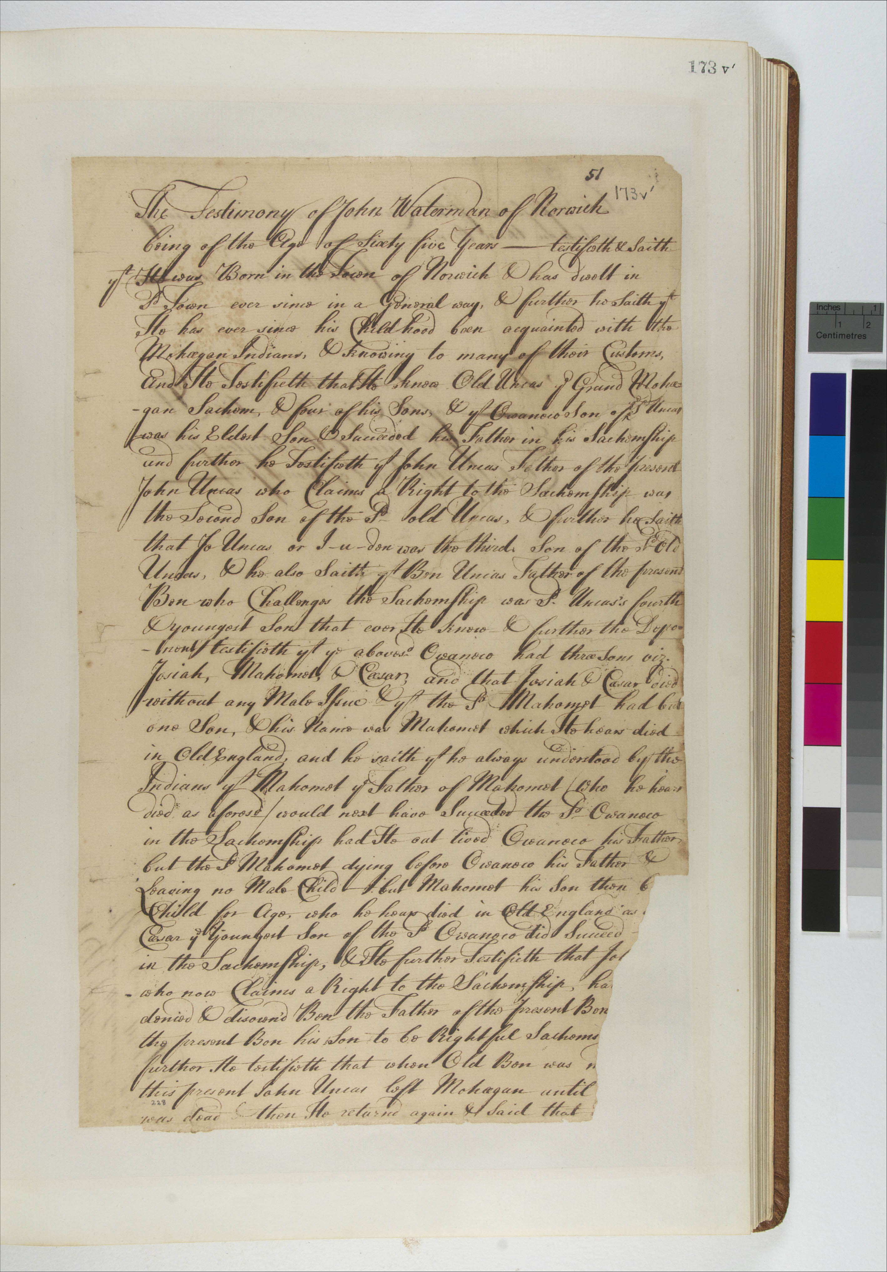 Culture -- Genealogy; Culture -- Inheritance; Culture -- Leadership; Genealogy; Government -- Colonial -- Colony of Connecticut -- General Court; Government -- Tribal -- Mohegan -- Mason Faction -- Sachems/Sagamores -- John Uncas (1736-c.1769); Government -- Tribal -- Mohegan -- Mason Faction -- Sachems/Sagamores -- Mahomet (1723-1736); Government -- Tribal -- Mohegan -- Pro-Government Faction -- Sachems/Sagamores -- Ben Uncas II (1726-1746); Government -- Tribal -- Mohegan -- Pro-Government Faction -- Sachems/Sagamores -- Major Ben Uncas I (1723-1725); Government -- Tribal -- Mohegan -- Sachems/Sagamores -- Owaneco (1683-1715); Government -- Tribal -- Mohegan -- Sachems/Sagamores -- Uncas (1638-1683); Land -- Complaints -- Controversies -- Mohegan Case; Land -- Reservation/Reserve -- Mohegan; Law -- Imperial Actions -- Case Names -- Mohegan Case; Law -- Imperial Actions -- Privy Council -- Civil Appeals; Relations -- Colonial Affairs; Relations -- Tribal Affairs; Tribes/Communities -- Mohegan; Vital Records -- Deaths; YIPP -- Colony of Connecticut Collection, 1603-1783