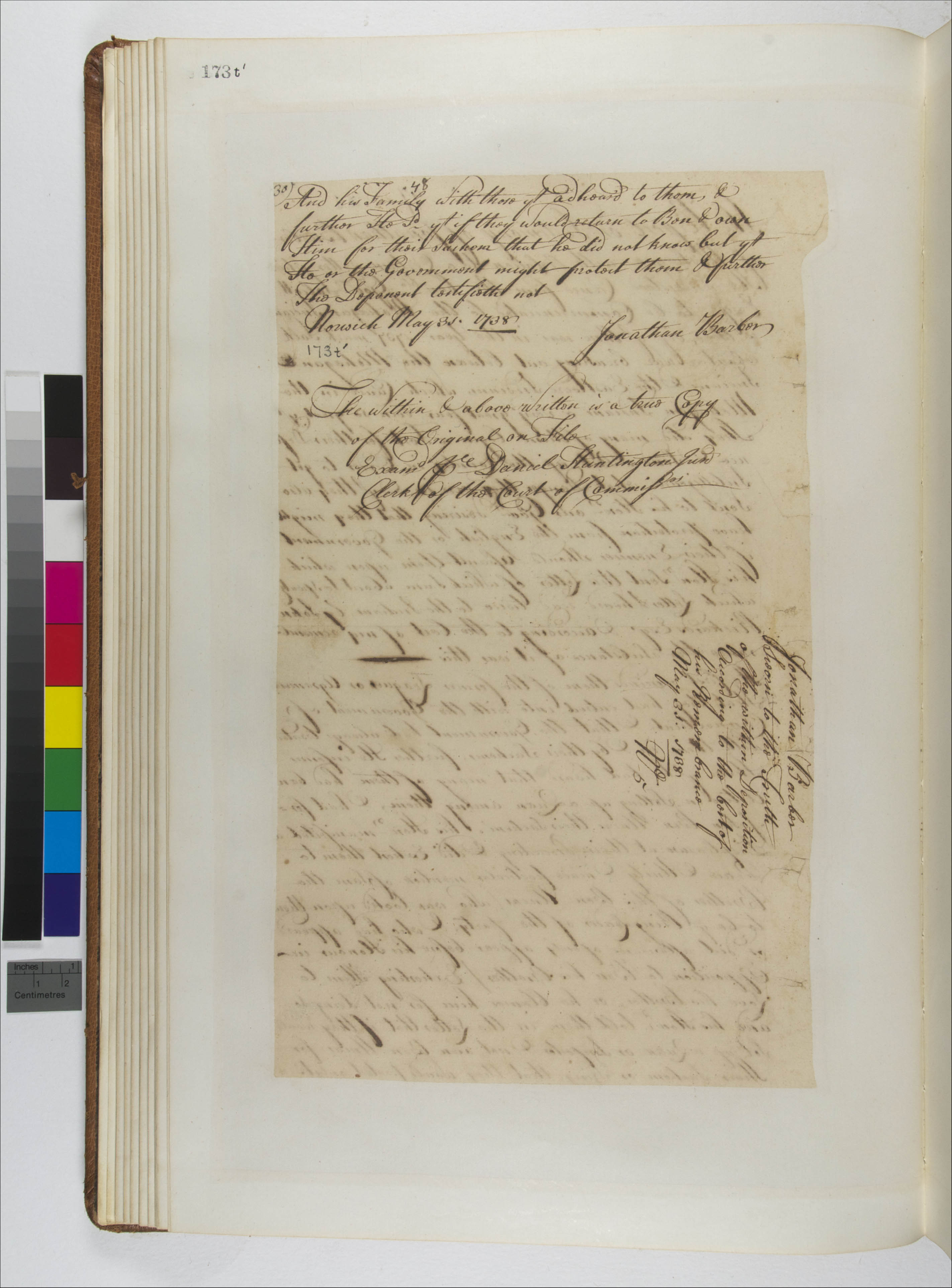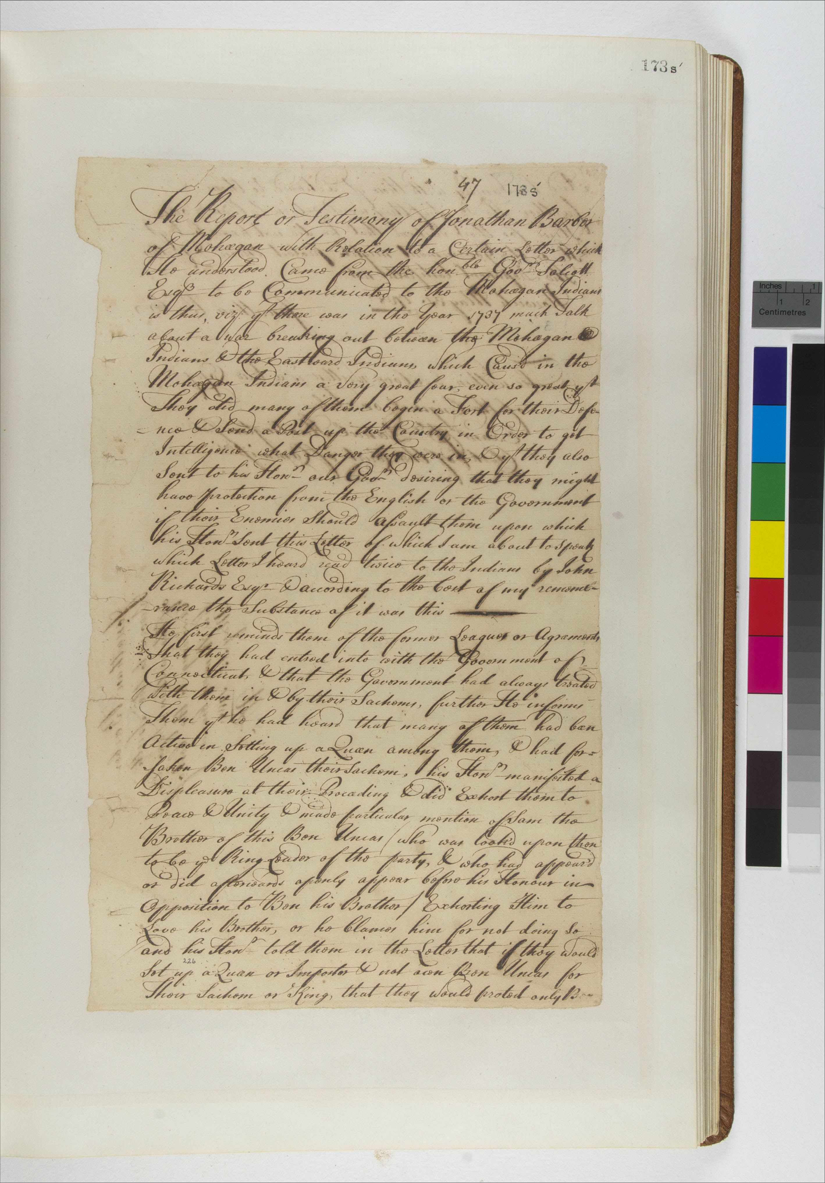 Abstract Ideas -- Fear/Anxiety; Abstract Ideas -- Fidelity; Buildings/Structures -- Forts; Culture -- Genealogy; Culture -- Inheritance; Culture -- Leadership; Genealogy; Government -- Colonial -- Colony of Connecticut; Government -- Tribal -- Mohegan -- Mason Faction -- Sachems/Sagamores -- Anne Uncas (1736); Government -- Tribal -- Mohegan -- Mason Faction -- Sachems/Sagamores -- Samuel Uncas; Government -- Tribal -- Mohegan -- Pro-Government Faction -- Sachems/Sagamores -- Ben Uncas II (1726-1746); Land -- Complaints -- Controversies -- Mohegan Case; Land -- Reservation/Reserve -- Mohegan; Law -- Imperial Actions -- Case Names -- Mohegan Case; Law -- Imperial Actions -- Privy Council -- Civil Appeals; Relations -- Colonial Affairs; Relations -- Tribal Affairs; Tribes/Communities -- Mohawk; Tribes/Communities -- Mohegan; YIPP -- Colony of Connecticut Collection, 1603-1783