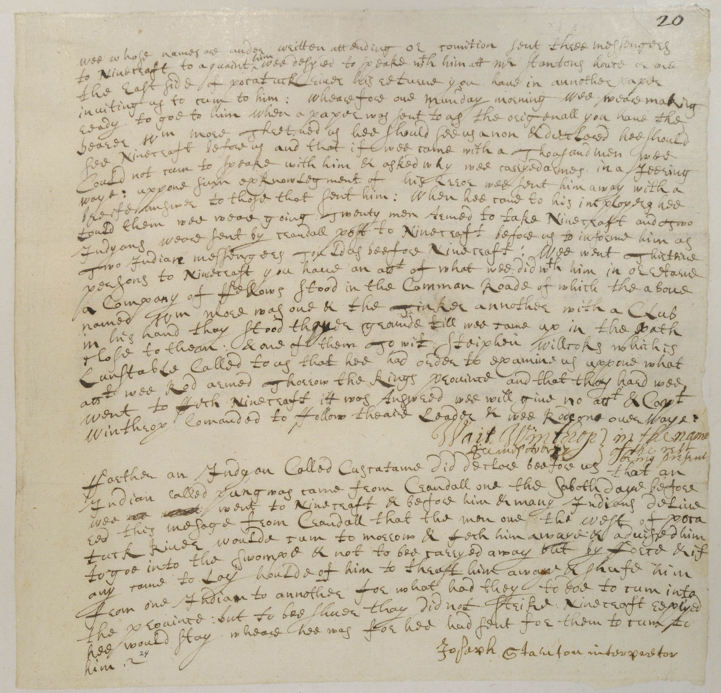 Crandall, John (Mentioned within document); Cuscatame (Mentioned within document); Moore, William (Mentioned within document); Ninigret, -1677 (Mentioned within document); Pung (Mentioned within document); Stanton, Joseph (Mentioned within document); Unknown (Recipient); Wilcox, Stephen (Mentioned within document)