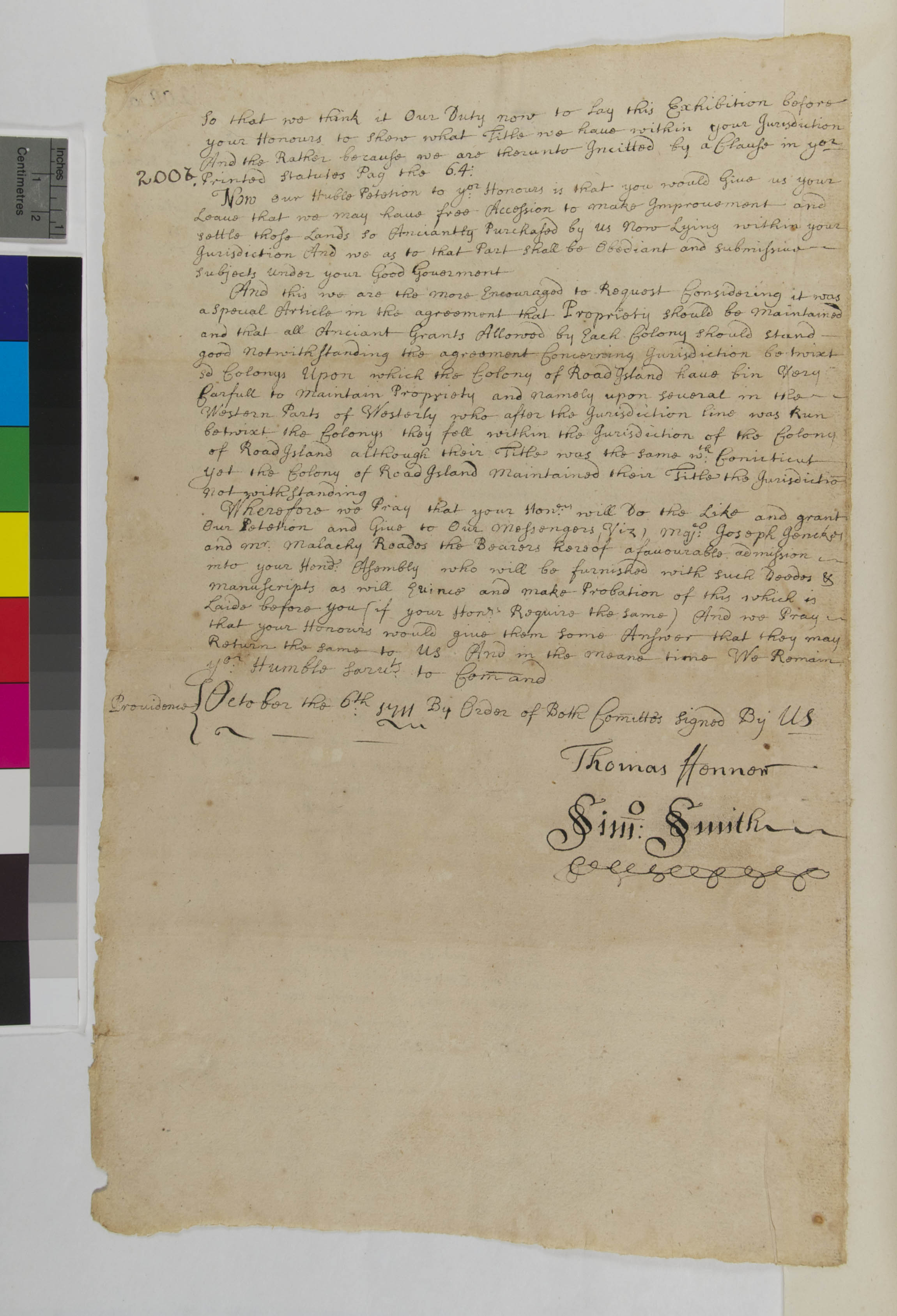Thomas Henner and Simon Smith's Petition to the Connecticut General Court, October 6, 1711, (1711.10.06.00), Grant-Costa, Paul, et. al., eds., Yale Indian Papers Project, Yale University, http://jake.library.yale.edu:8080/neips/data/html/171