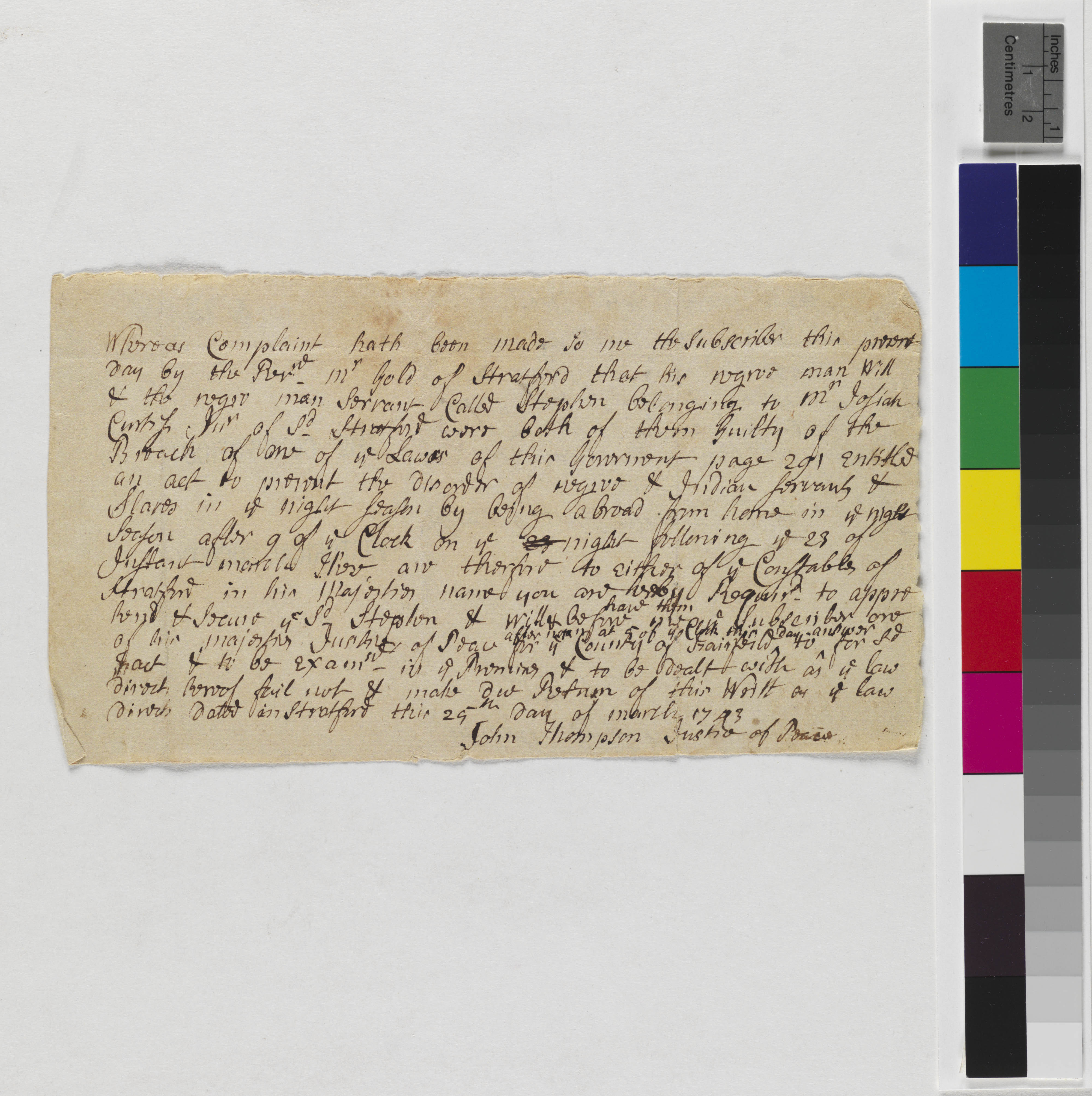 Writ to Apprehend and Secure Two Servants, March 25, 1744, (1744.03.25.00), Grant-Costa, Paul, et. al., eds., Yale Indian Papers Project, Yale University, http://jake.library.yale.edu:8080/neips/data/html/1744.03.25.00/1744.03.25.00.html.