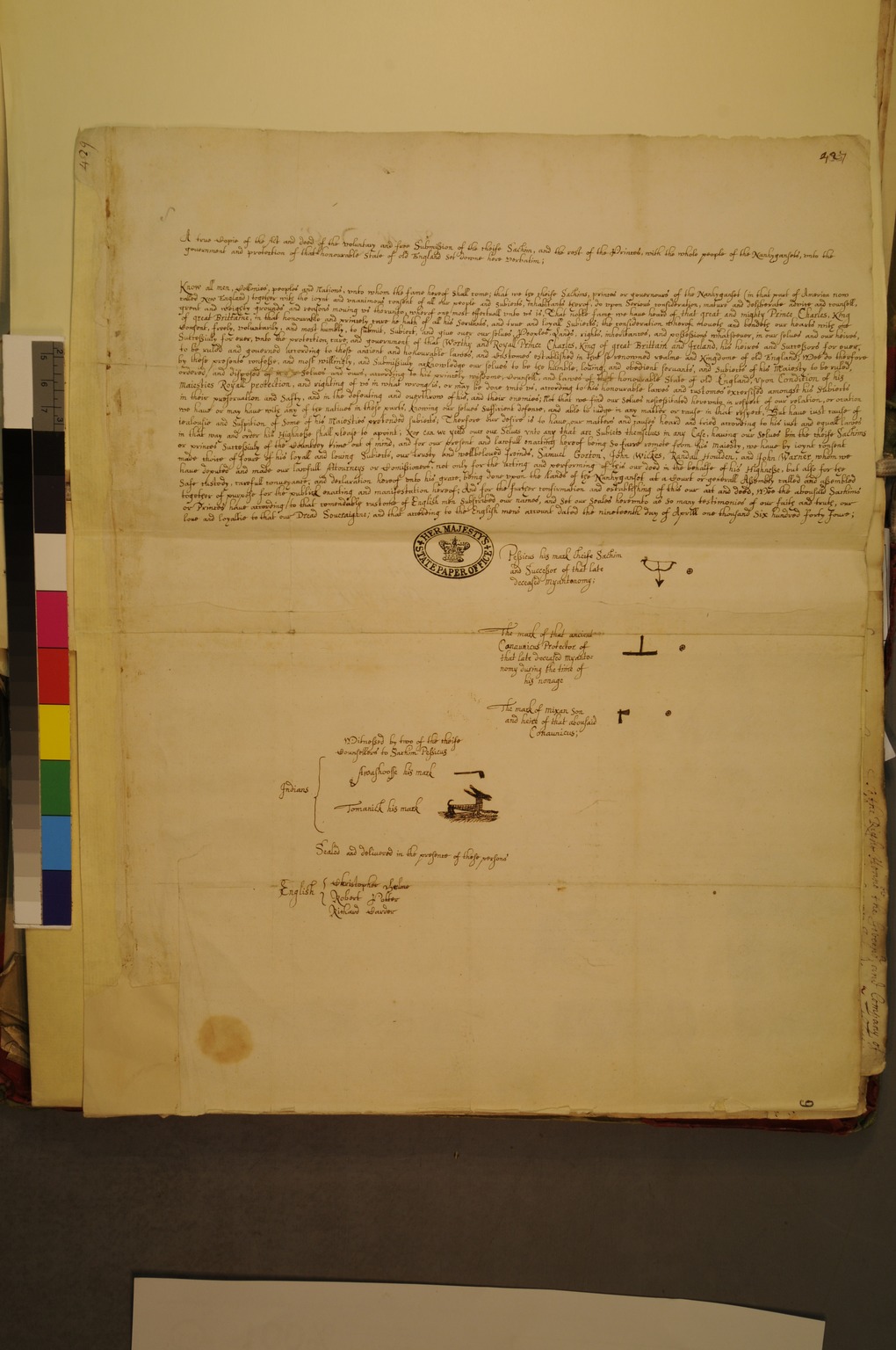 Copy of the Act and Deed of Submission of the Narragansett to the Protection of England