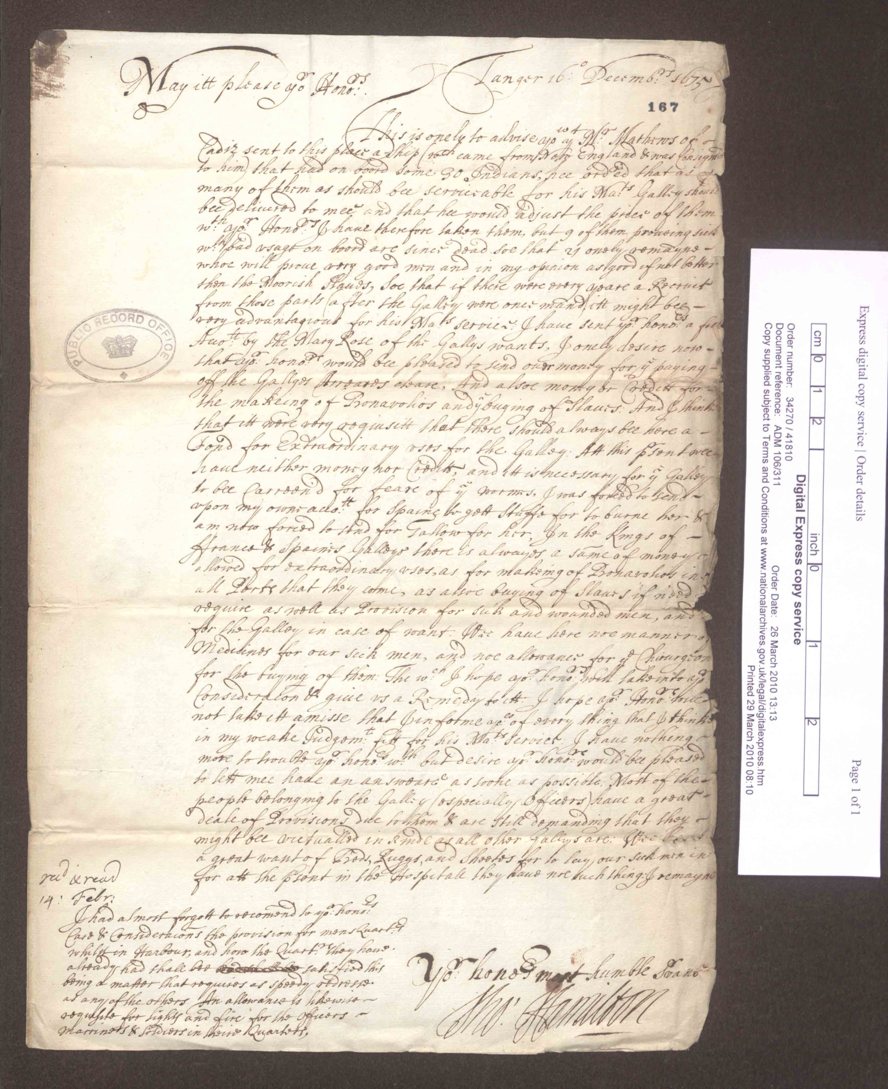 Letter from Captain Thomas Hamilton to the Admiralty Board