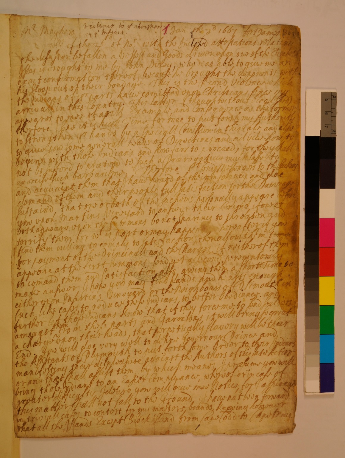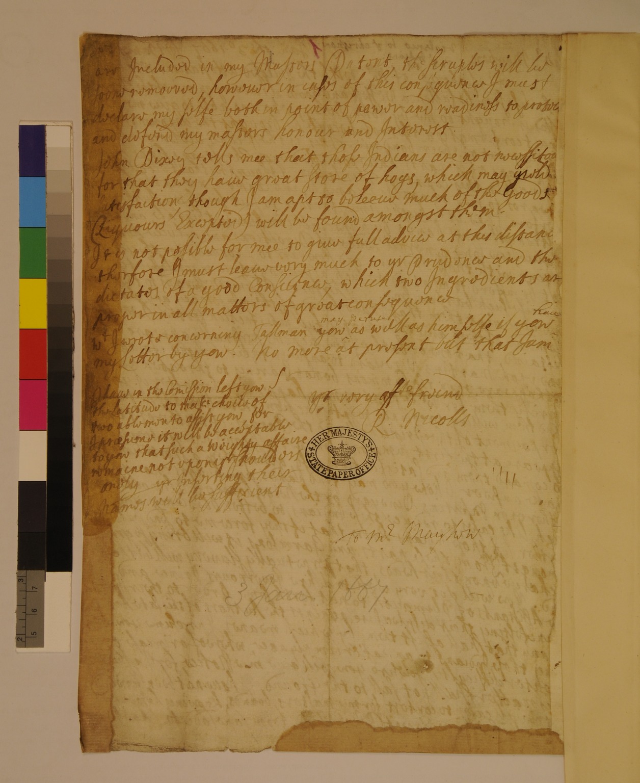 Letter from Mr. Mayhew to Richard Nichols