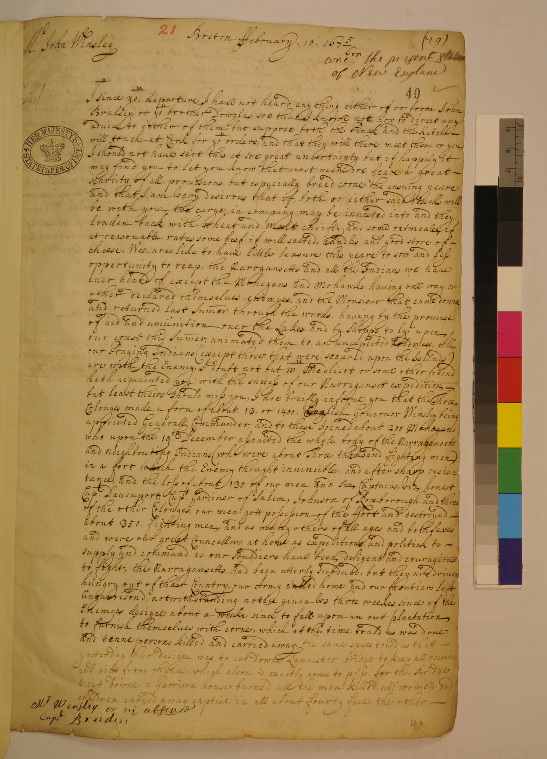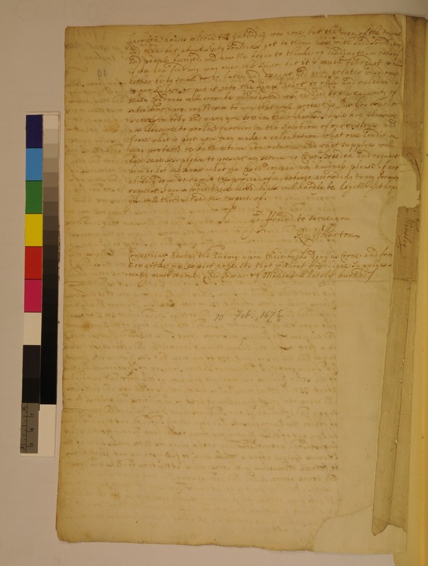 Letter from Richard Wharton to John Winsley
