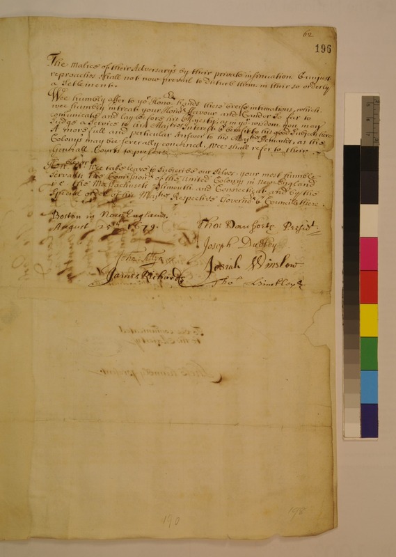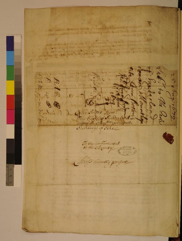 Letter from the Commissioners of the United Colonies to Robert Spencer, the Earl of Sunderland