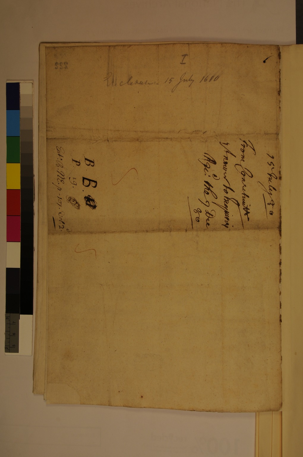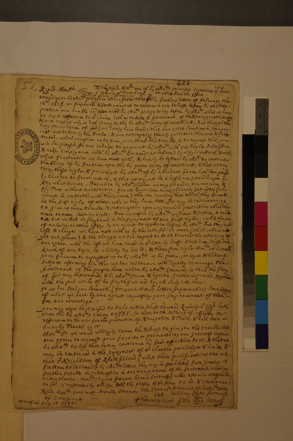 Letter of John Allyn to One of His Majesty's Principal Secretaries of State at Whitehall