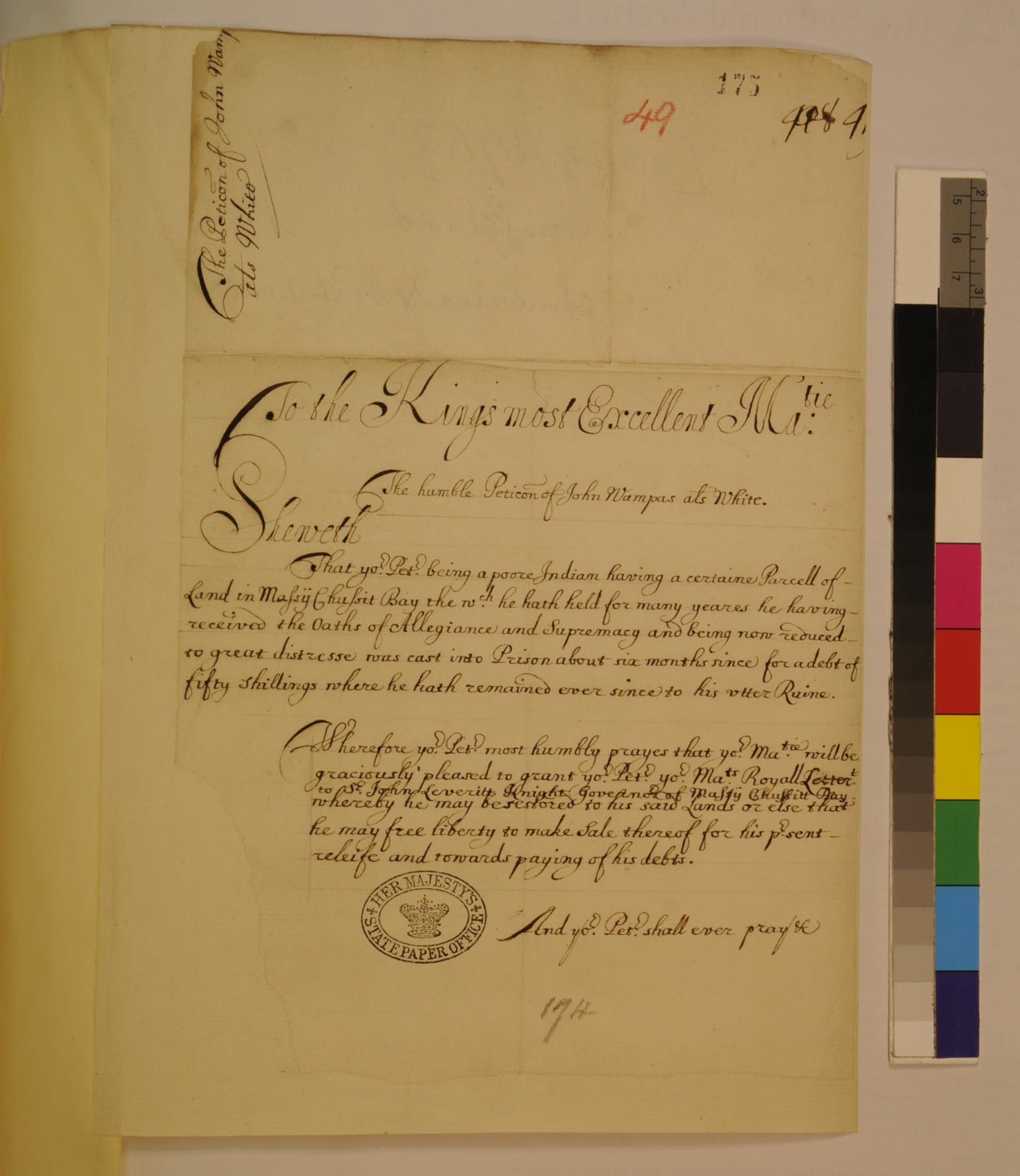 Petition of John Wampus, alias John White to King Charles II