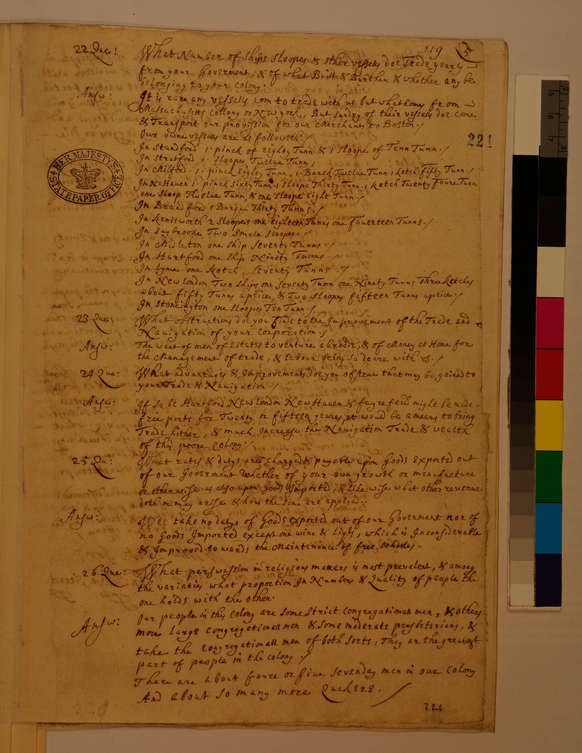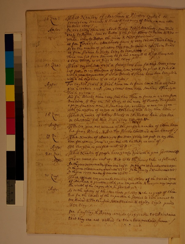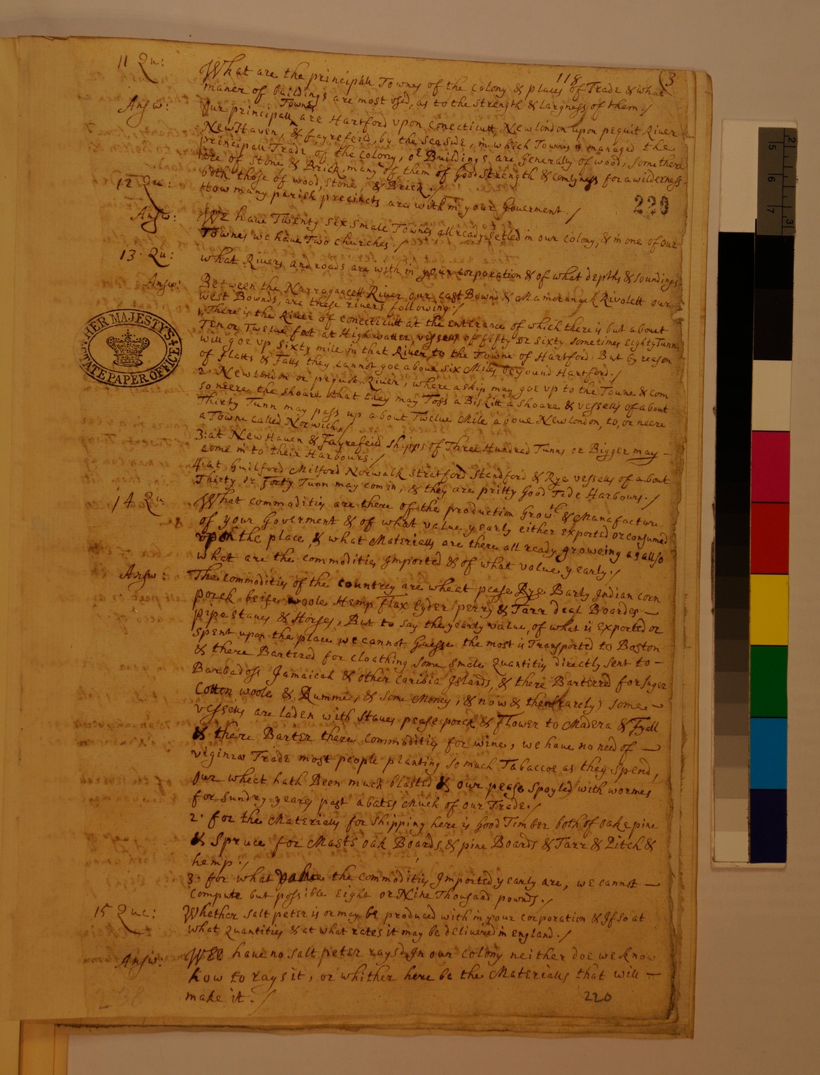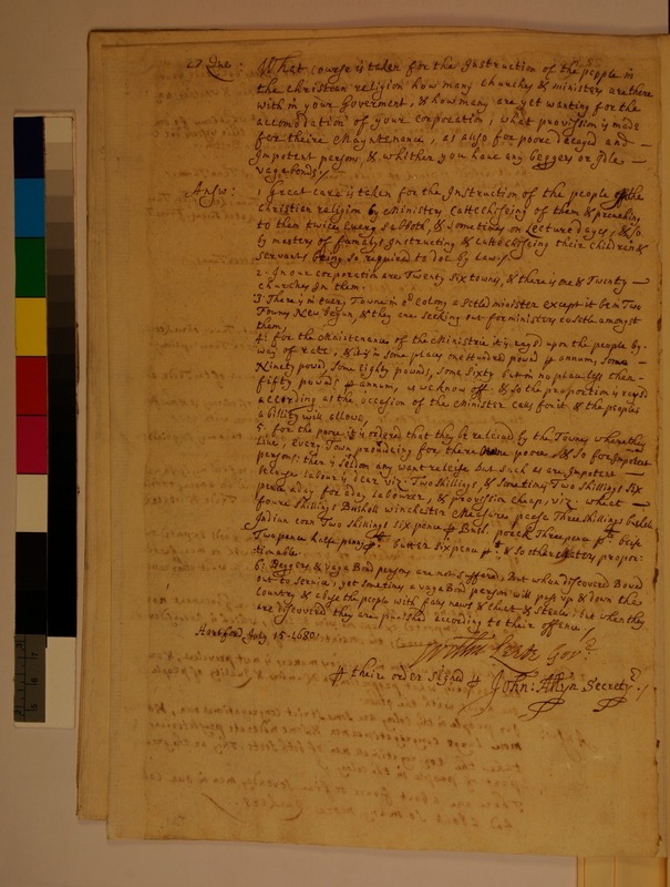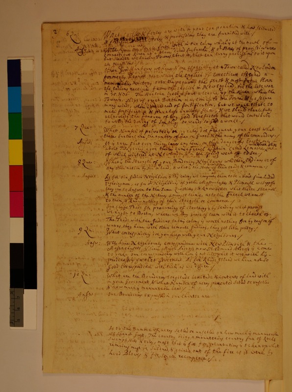 Response from the Colony of Connecticut to Questions Received from the Privy Council Appointed Committee for Trade in Foreign Plantations