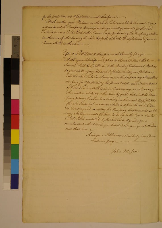The Petition of John Mason, Agent and Trustee to the Tribe of Mohegan Indians in America