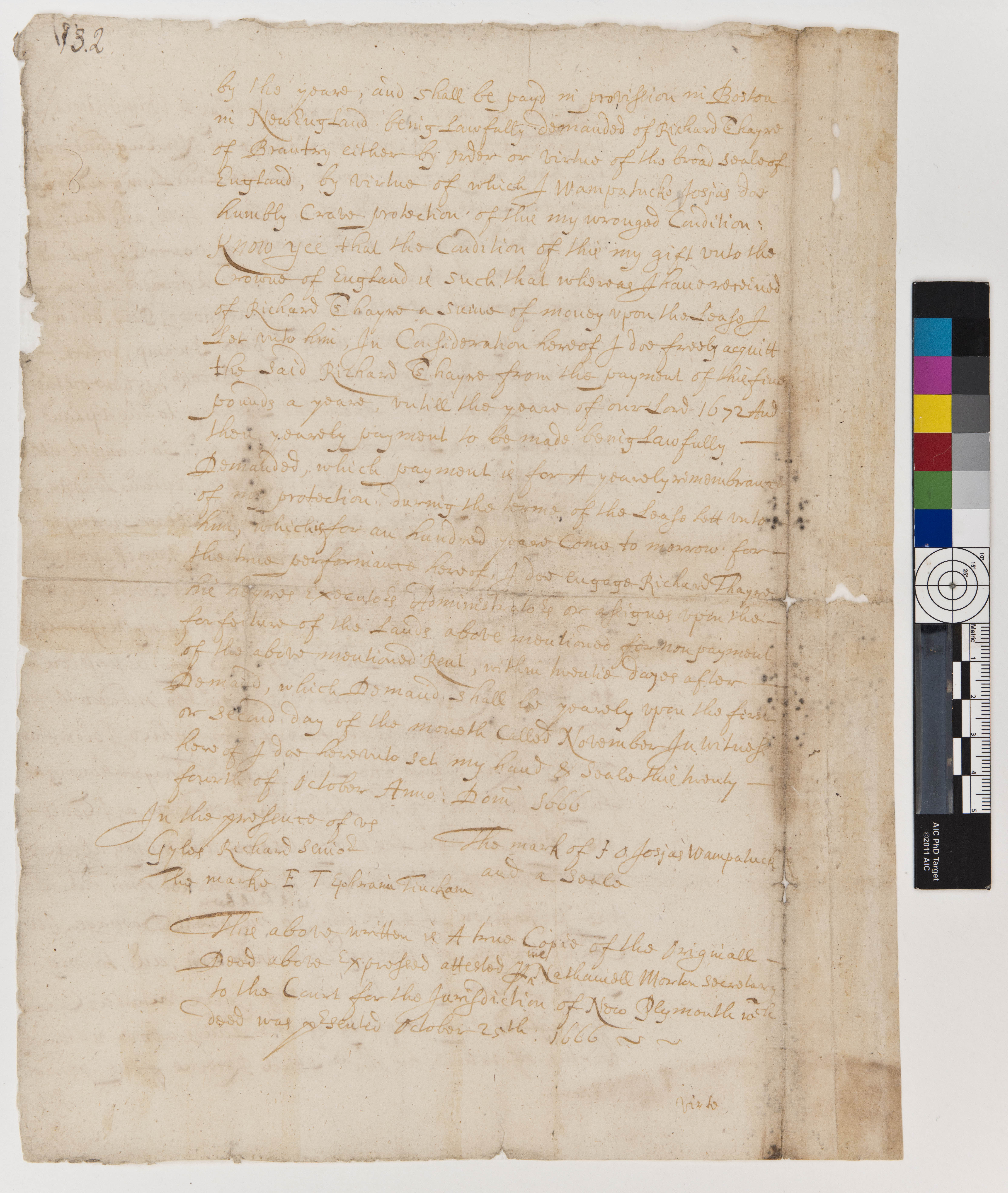 Deed for Land near Blue Hills Given by Josiah Wampatuck to the Crown of England