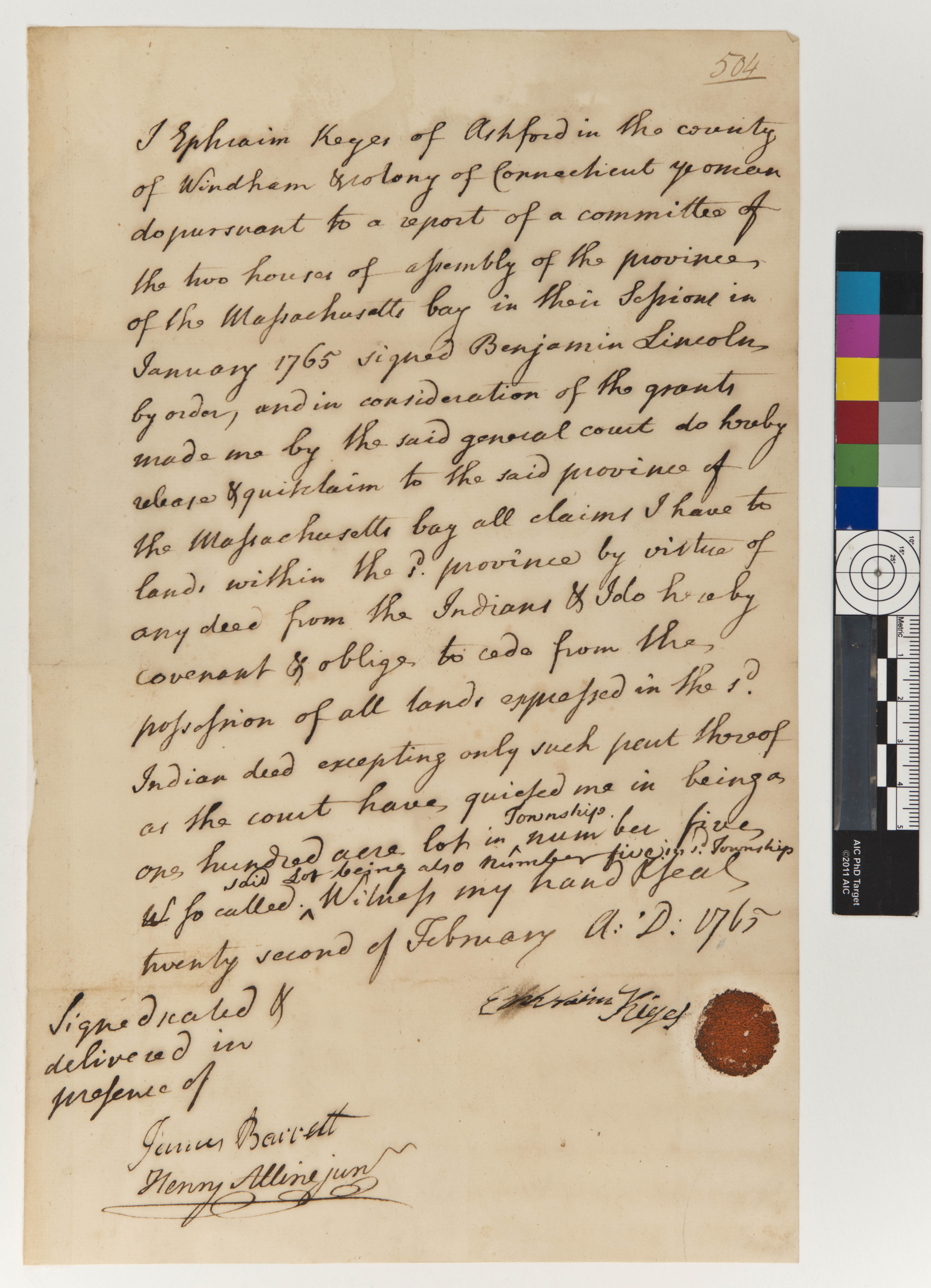 Ephraim Keyes Conveyance of Land to the Massachusetts Bay Colony