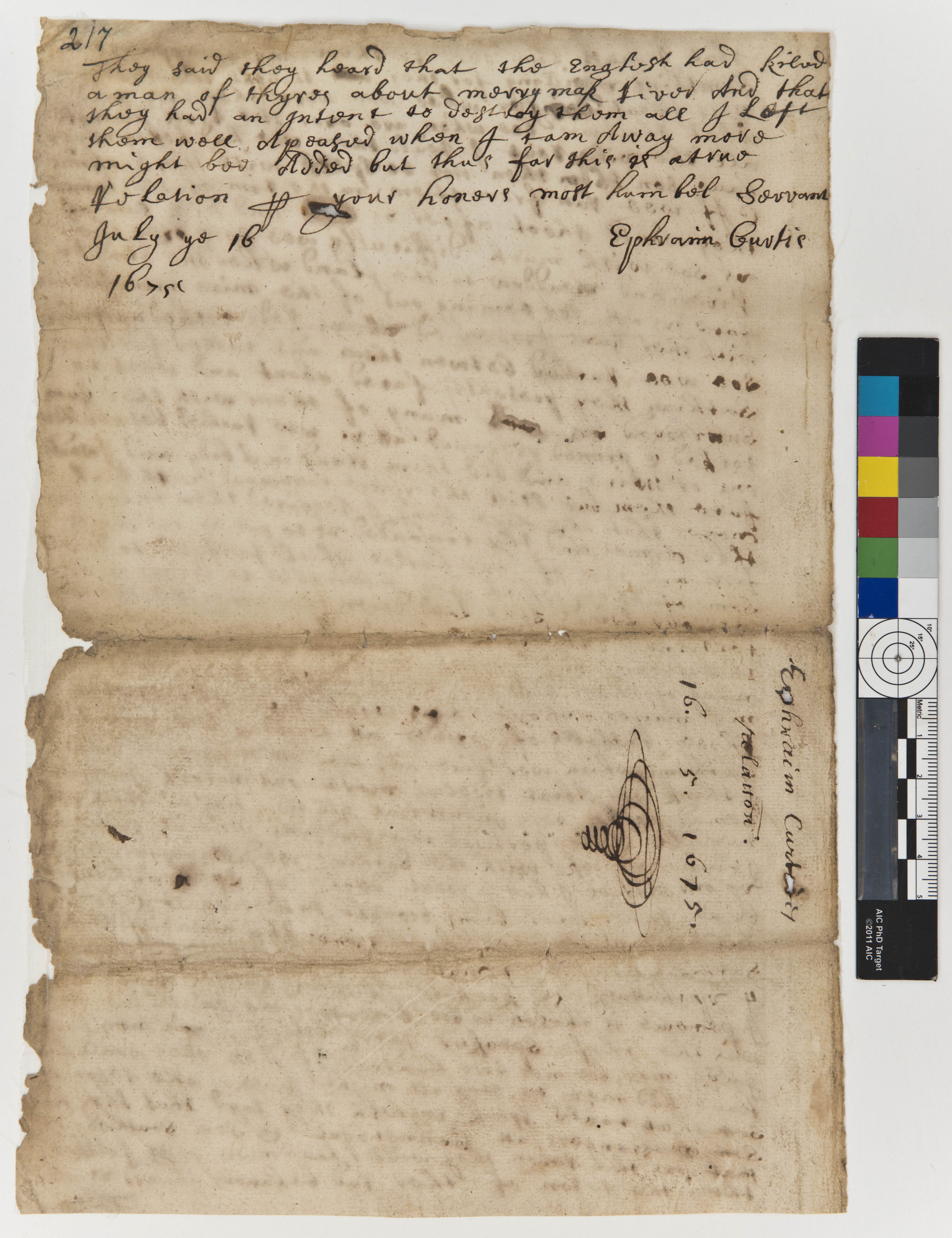 Report of Ephraim Curtis to the Governor and Council of Massachusetts Colony on the State of the Nipmuc Indians