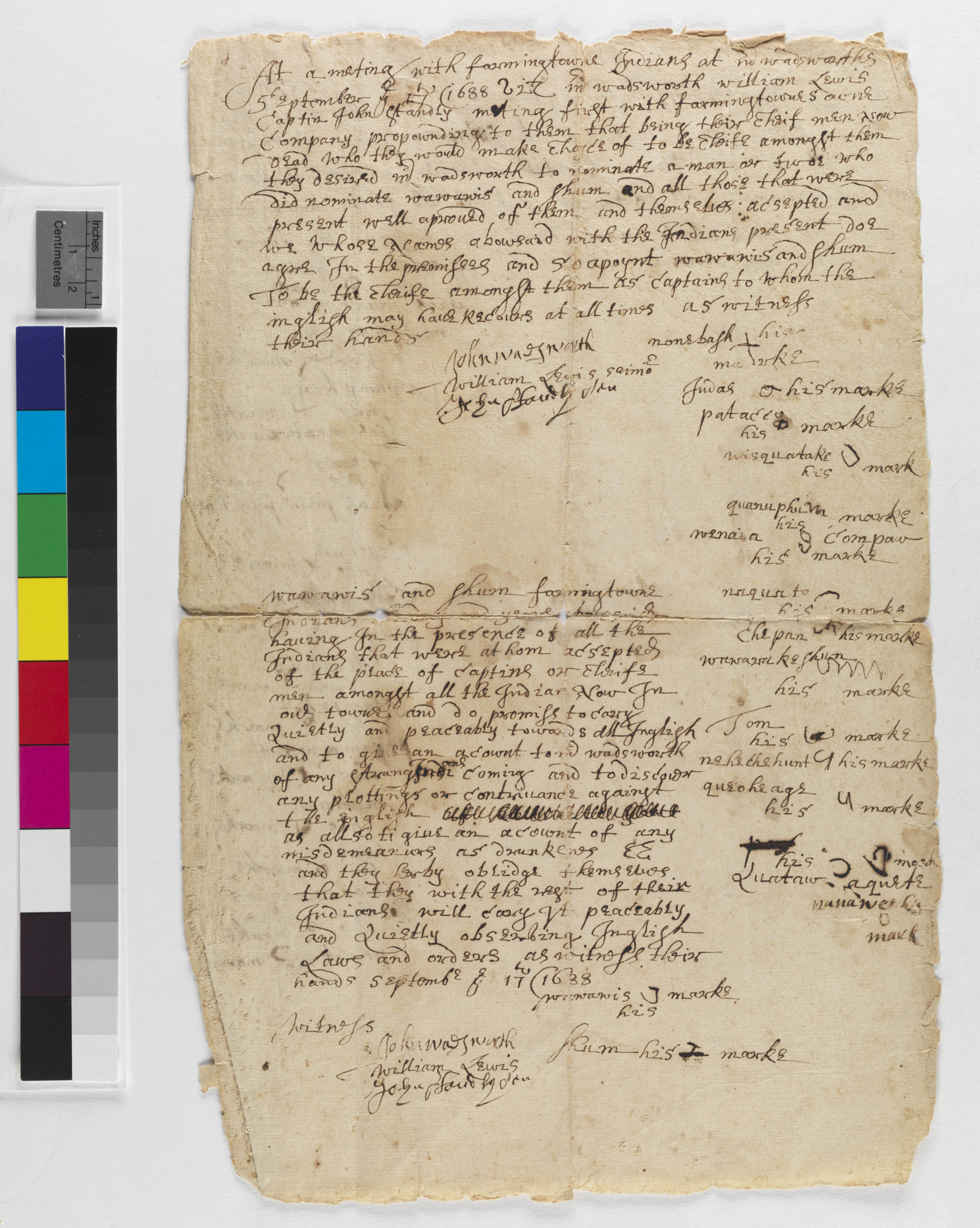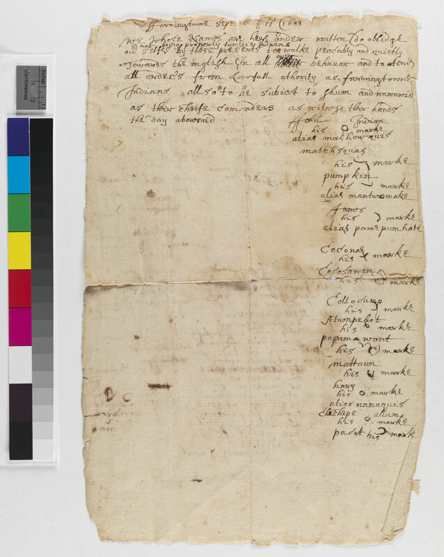 Abstract Ideas -- Authority; Abstract Ideas -- Friend Indians; Census/Enumerations -- Private/Informal; Culture -- Leadership -- Sachems; Culture -- Leadership; Culture -- Temperance/Intemperance; Government -- Colonial -- Colony of Connecticut -- Towns -- Farmington; Government -- Tribal -- Tunxis -- Shum; Government -- Tribal -- Tunxis -- Wawowos; Law -- Jurisdiction; Relations -- Colonial Affairs; Relations -- Inter-Tribal Affairs -- Alliance; Relations -- Tribal Affairs; Repository -- Connecticut Historical Society; Tribes/Communities -- Quinnipiac; Tribes/Communities -- Tunxis; Tribes/Communities -- Unknown/Foreign; Tribes/Communities -- Wangunk; YIPP -- Colony of Connecticut Collection, 1603-1783
