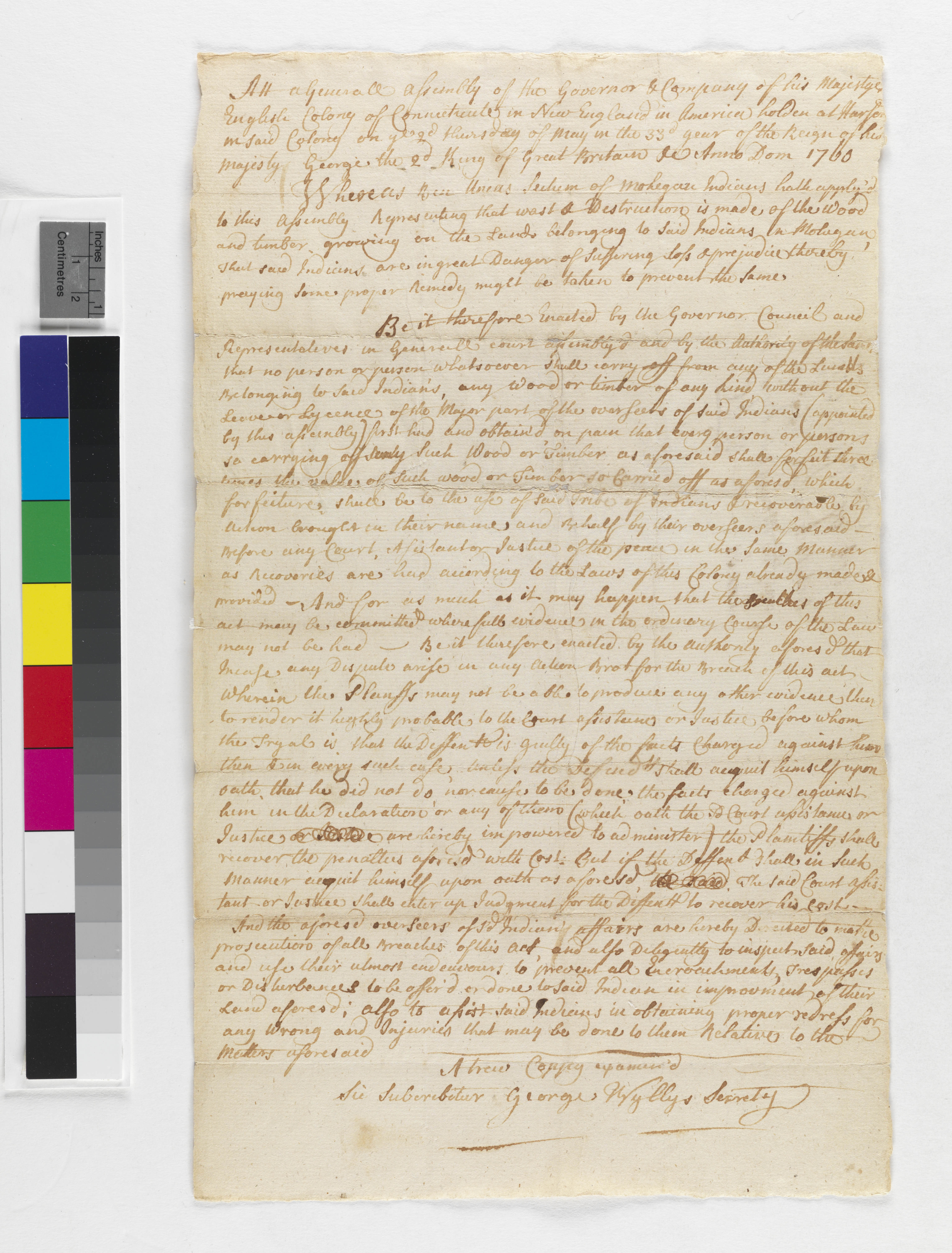 Copy of an Act of the General Assembly relative to the Timber on the Mohegan Indian Lands