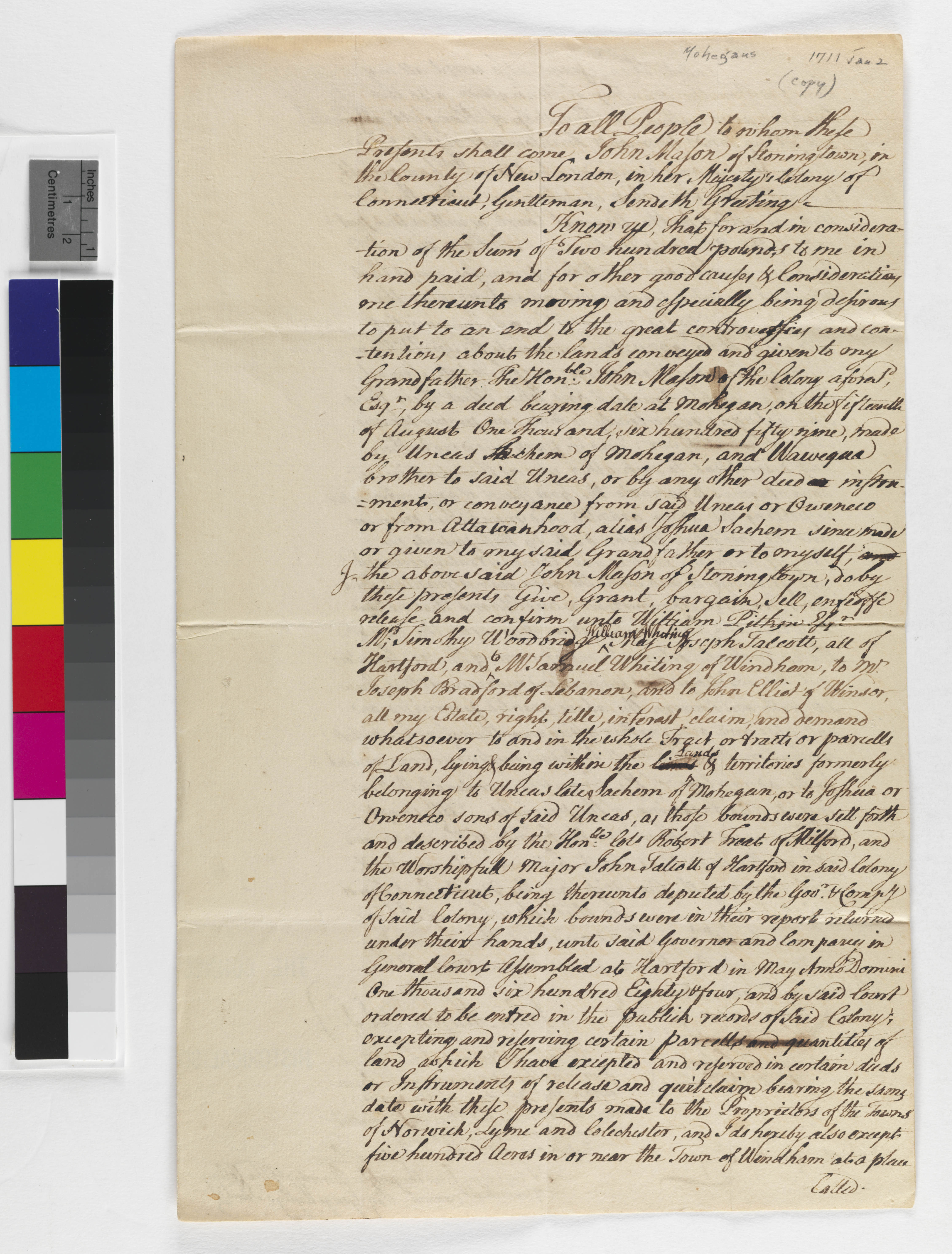 Copy of Deed from Uncas to John Mason