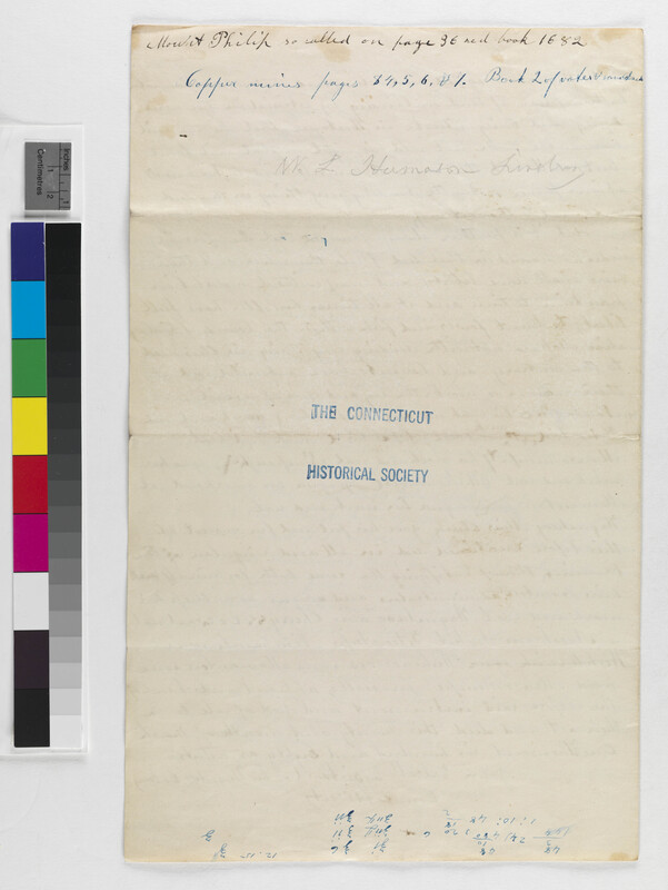 Images may be used only for purposes of research, private study or education. To publish, exhibit, or broadcast this image, permission must be requested and granted in writing using the Digital Reproduction Order Form available at http://www.chs.org. For additional information regarding copyright and publication contact Digital Reproductions through the website, or Connecticut Historical Society, One Elizabeth Street, Hartford, CT 06105. (860) 236-5621.