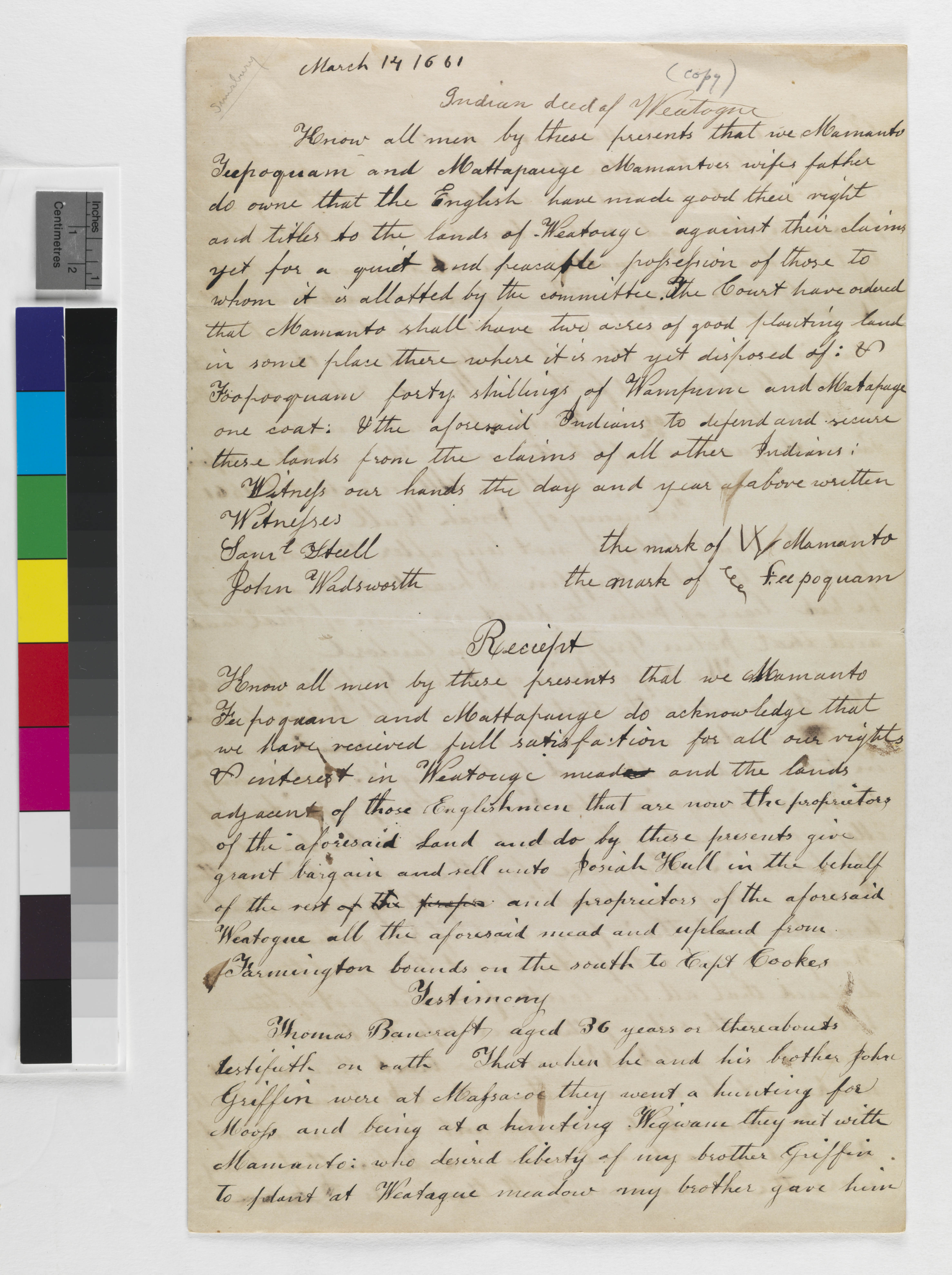 Copy of Indian Deeds in Simsbury