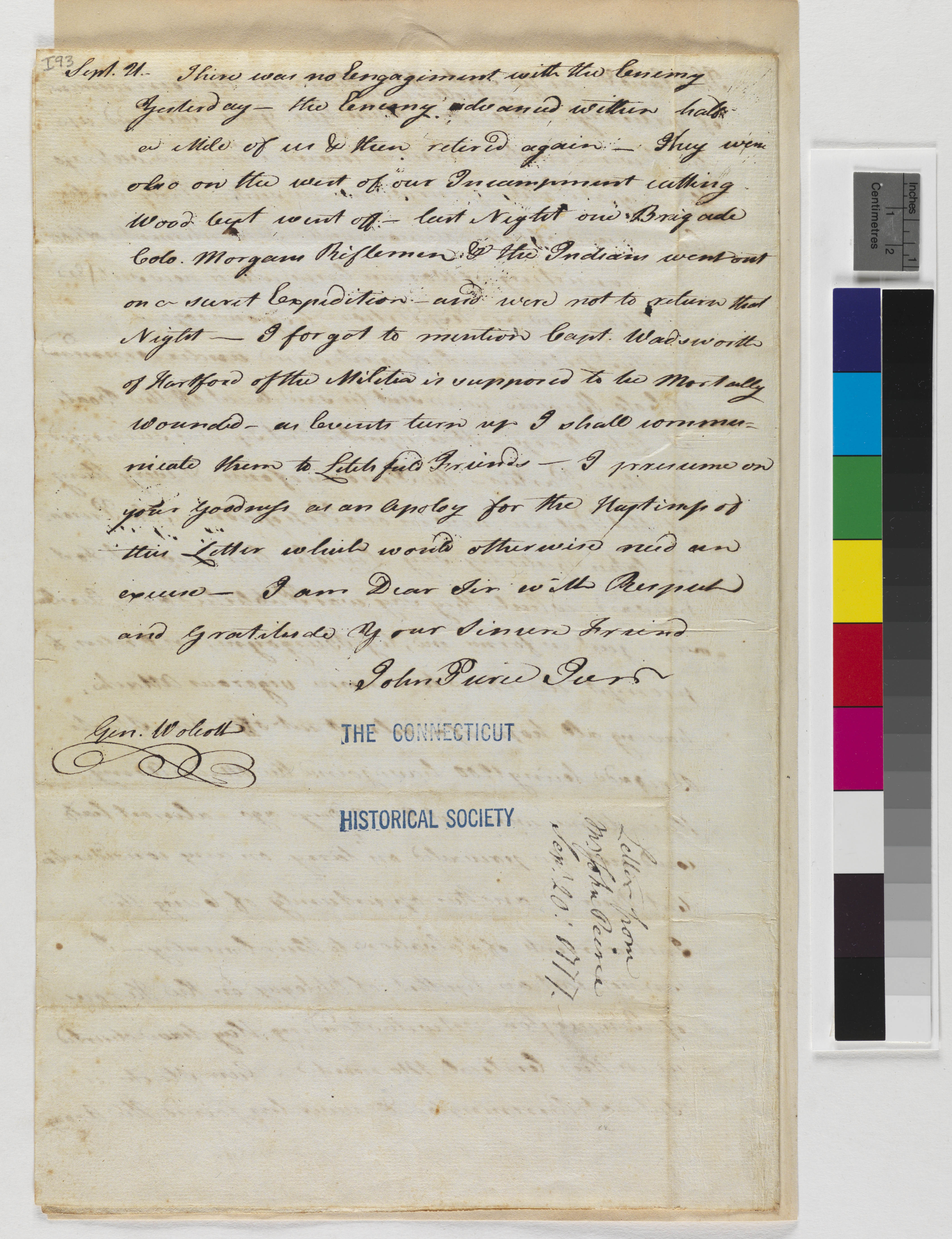 Letter from John Pierce, Jr. to General Wolcott