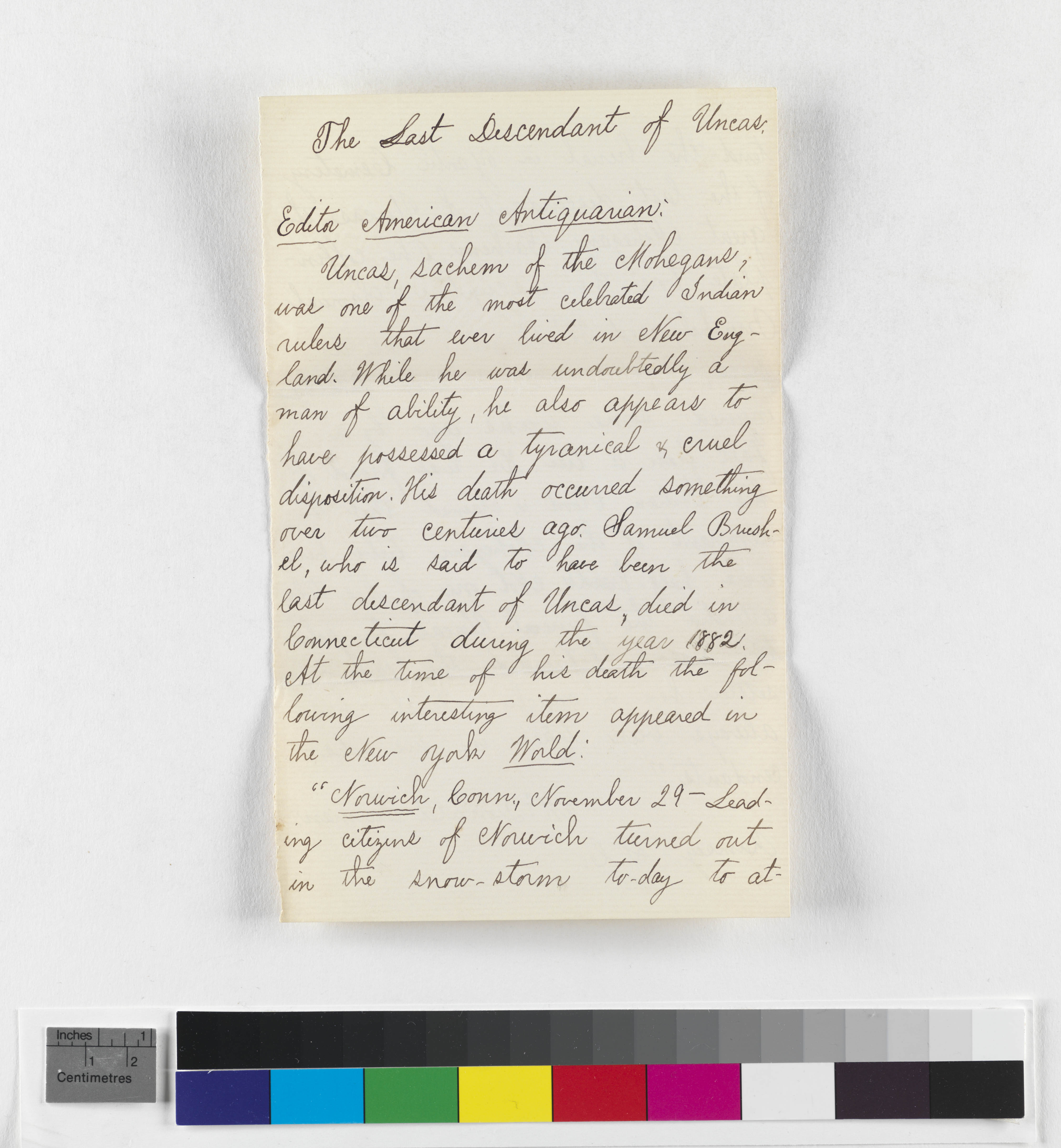 Images may be used only for purposes of research, private study or education. To publish, exhibit, or broadcast this image, permission must be requested and granted in writing using the Digital Reproduction Order Form available at http://www.chs.org. For additional information regarding copyright and publication contact Digital Reproductions through the website, or Connecticut Historical Society, One Elizabeth Street, Hartford, CT 06105. (860) 236-5621.