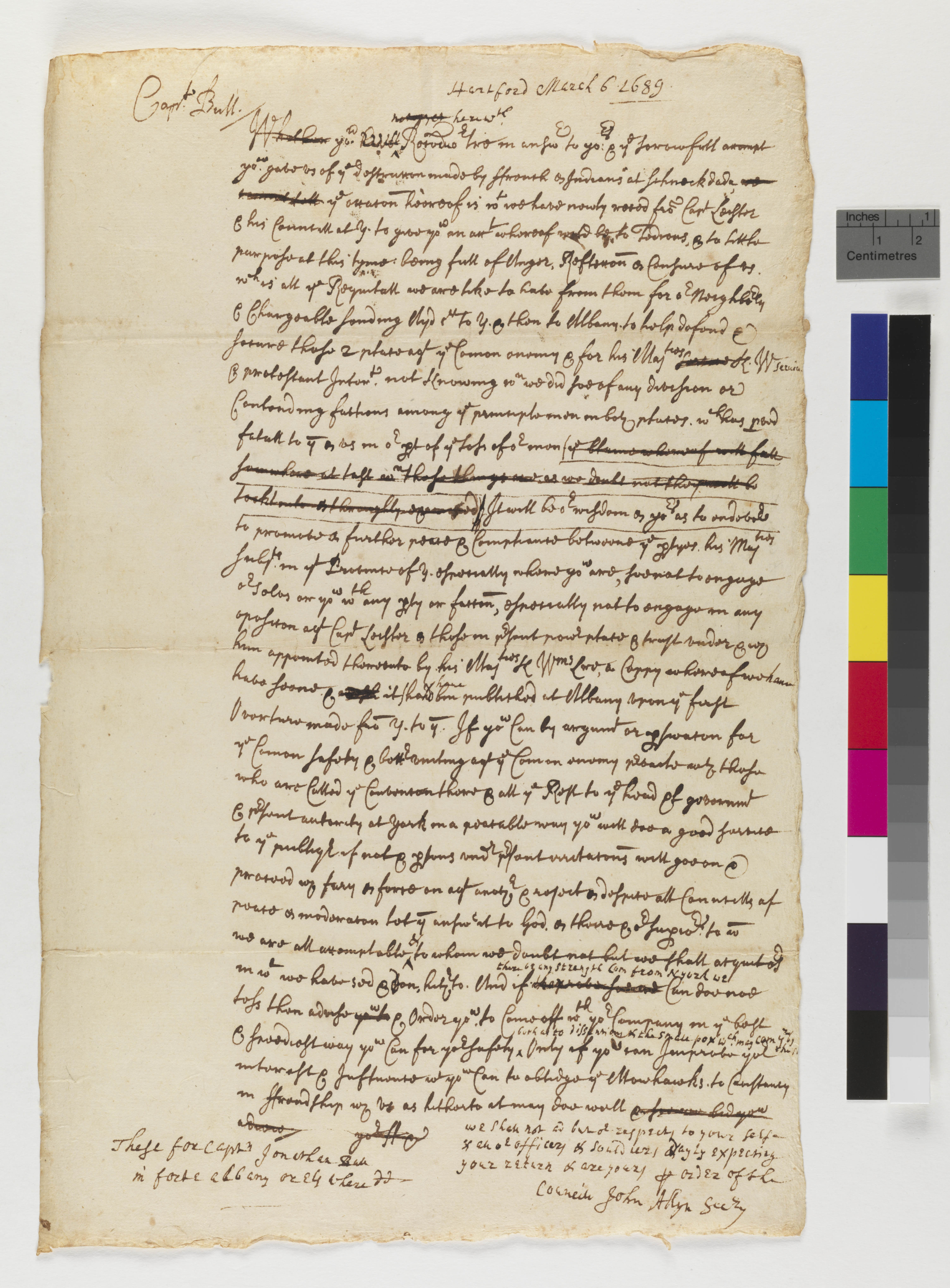 Disease/Illness -- Small Pox; Geopolitics -- Canada/New France; Geopolitics -- France; Government -- Colonial -- Colony of Connecticut; Government -- Colonial -- Province of New York; Government -- Imperial -- Agendas -- Military Affairs; Military -- Forts -- Fort Albany; Military -- War -- King Williamís War (1688-1697); Military -- War -- Peace Negotiations; YIPP -- Colony of Connecticut Collection, 1603-1783
