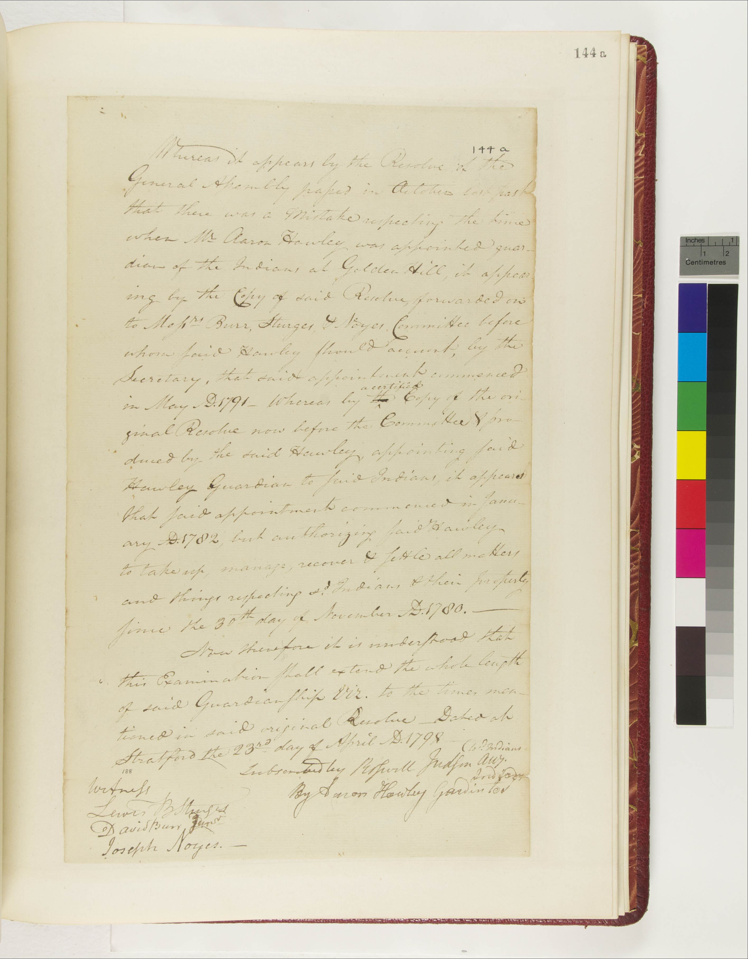 Agreement between Attorney Roswell Judson and Aaron Hawley, the Guardian of the Golden Hill Indians
