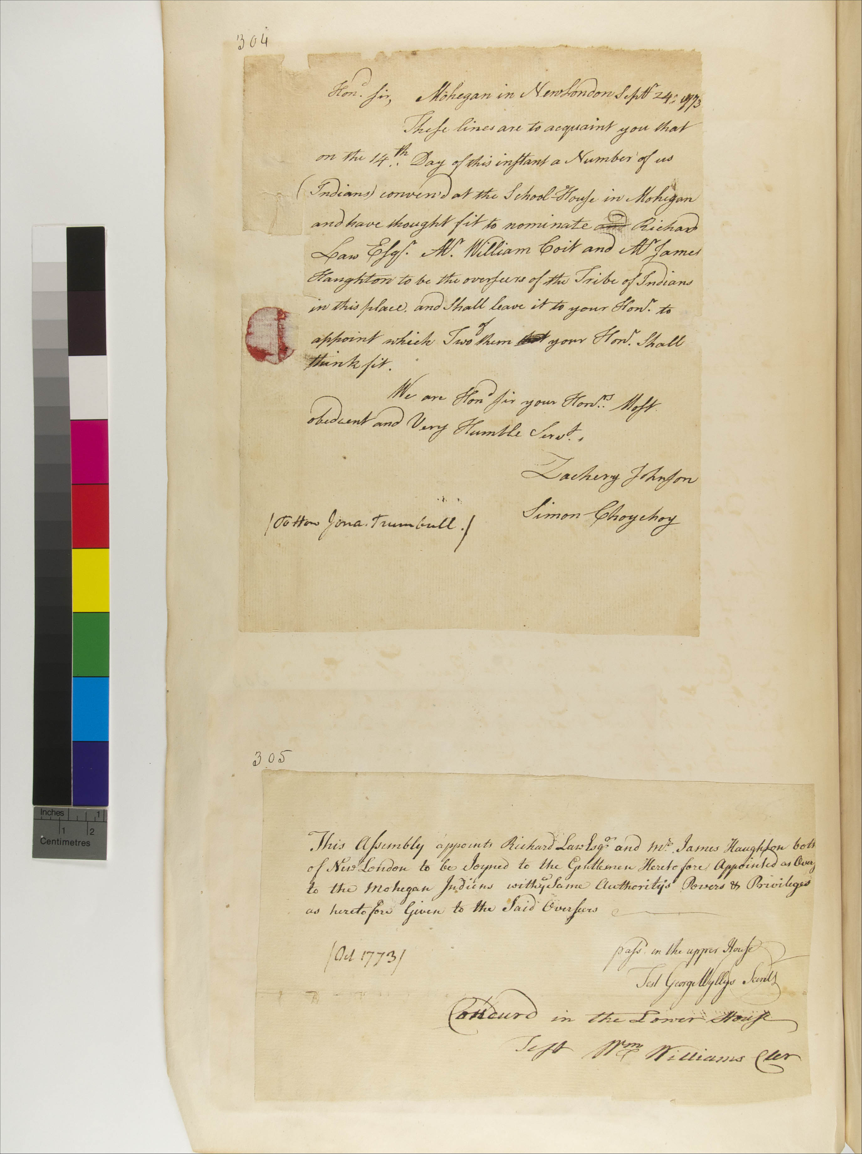 Appointment of Richard Law and James Haughton as Overseers of the Mohegan Tribe