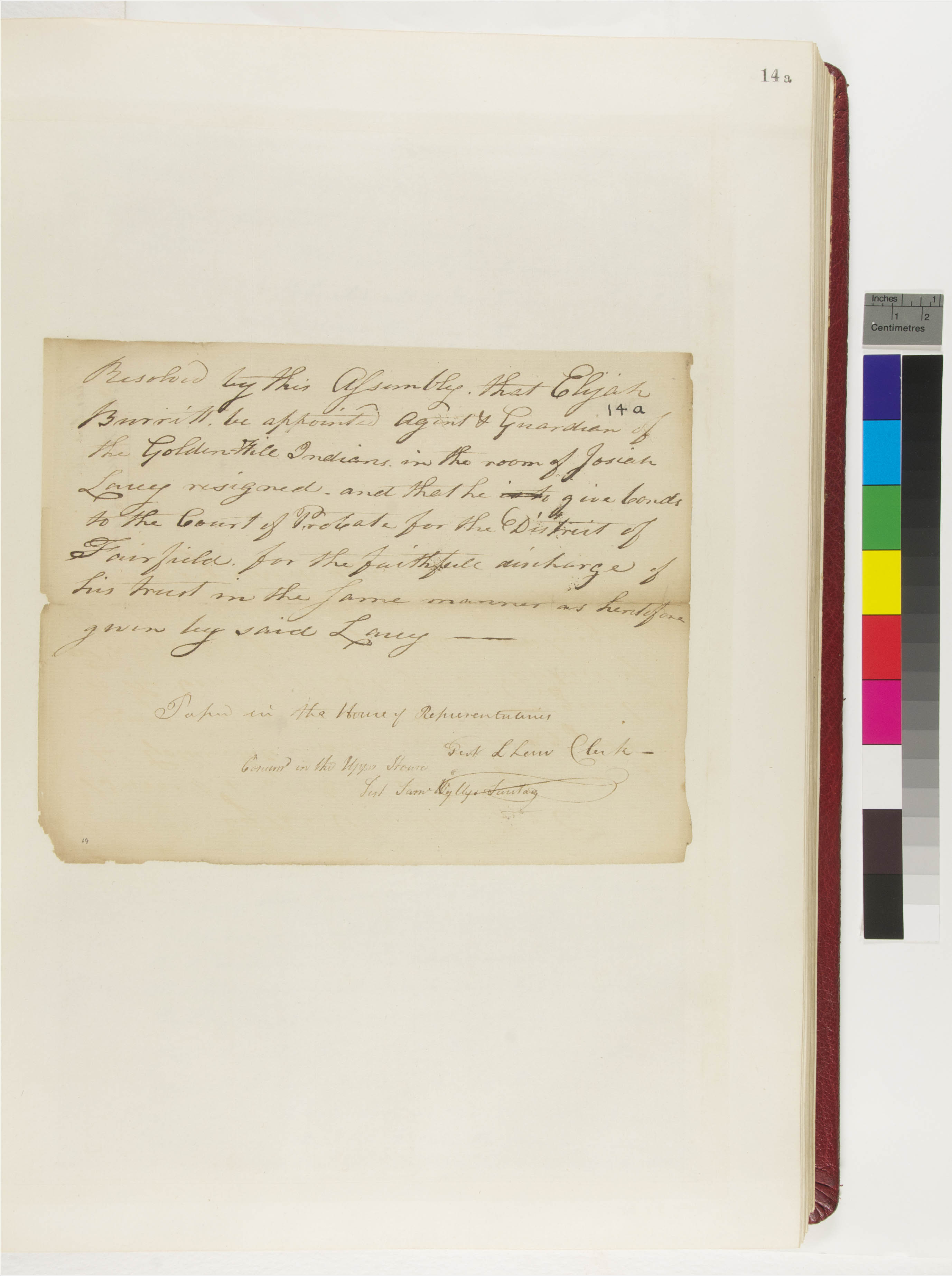 Connecticut General Assembly Resolve Appointing Elijah Burritt Guardian of Golden Hill Indians