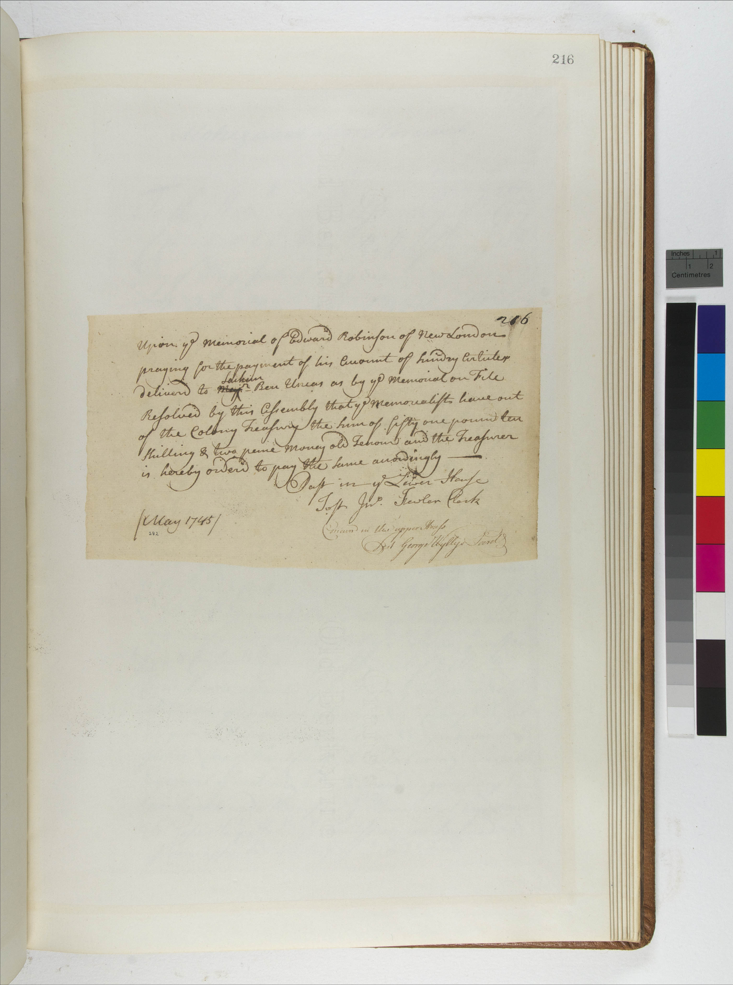 Fowler, John, 1690-1756 (Attestor); Robinson, Edward (Mentioned within document); Uncas, Benjamin II, -1746 (Mentioned within document); Unknown (Recipient); Wyllys, George, 1710-1796 (Attestor)