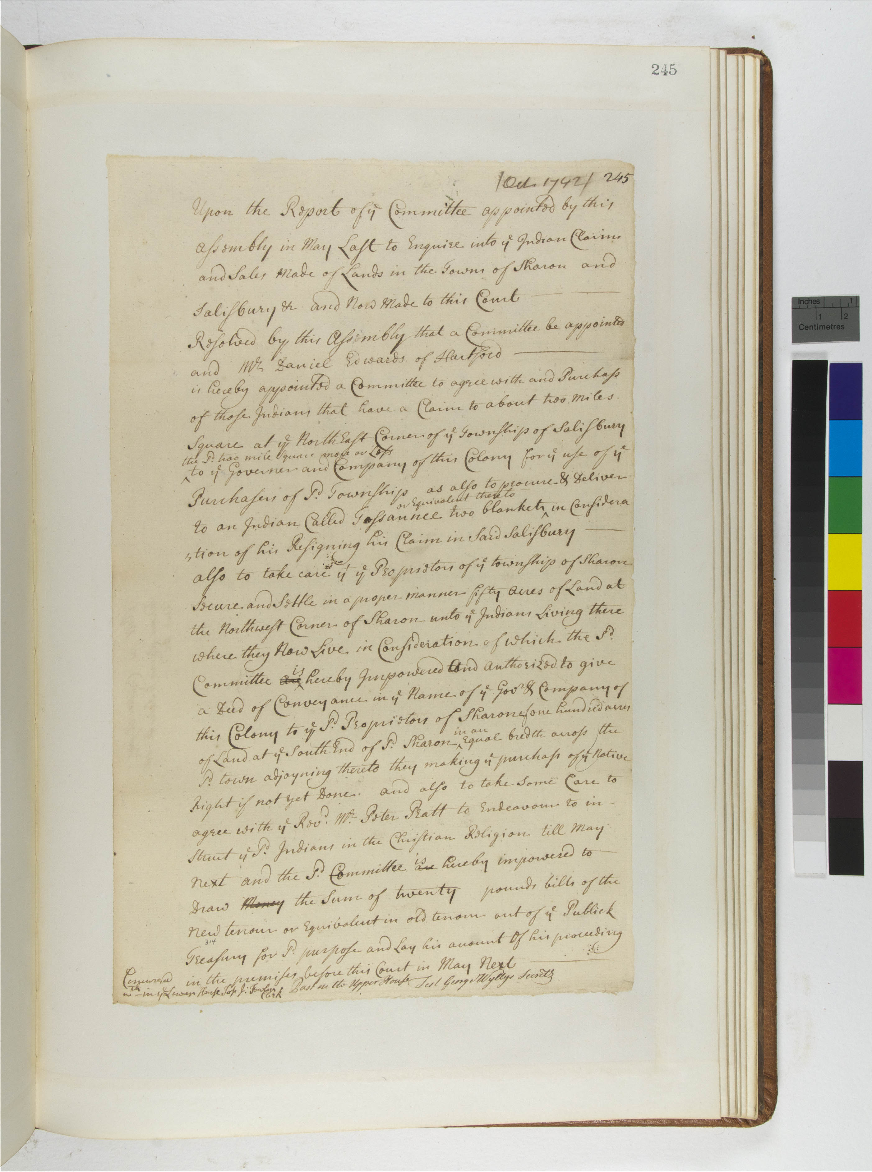 Connecticut General Assembly Resolve on the Purchase Land in Salisbury and Sharon for the Indians