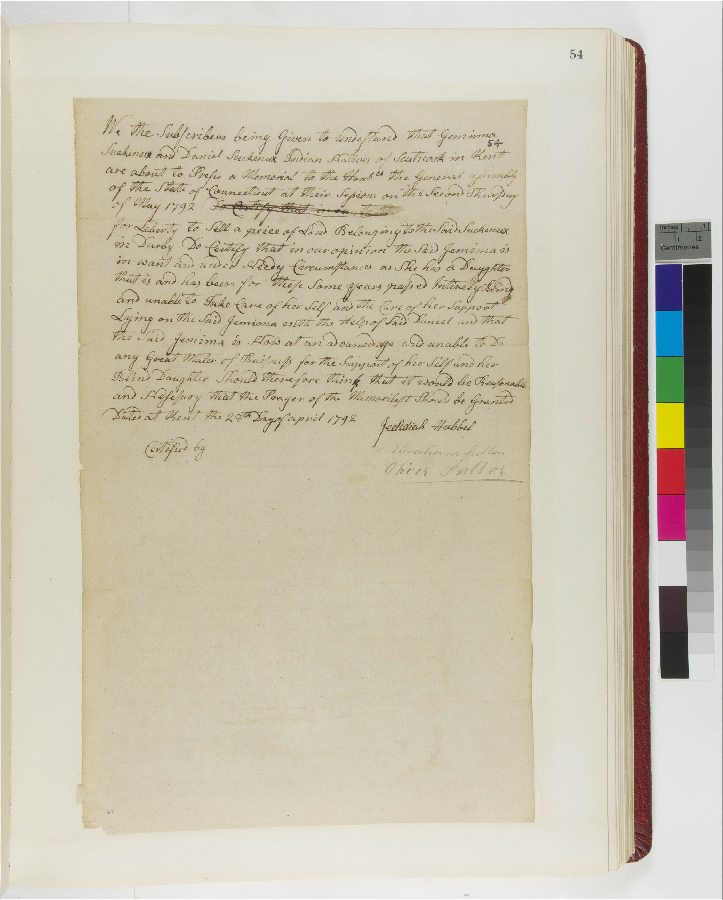Deposition of Jedediah Hubbell & Others from Kent in Regard to the Circumstances of the Schaghticoke Indians