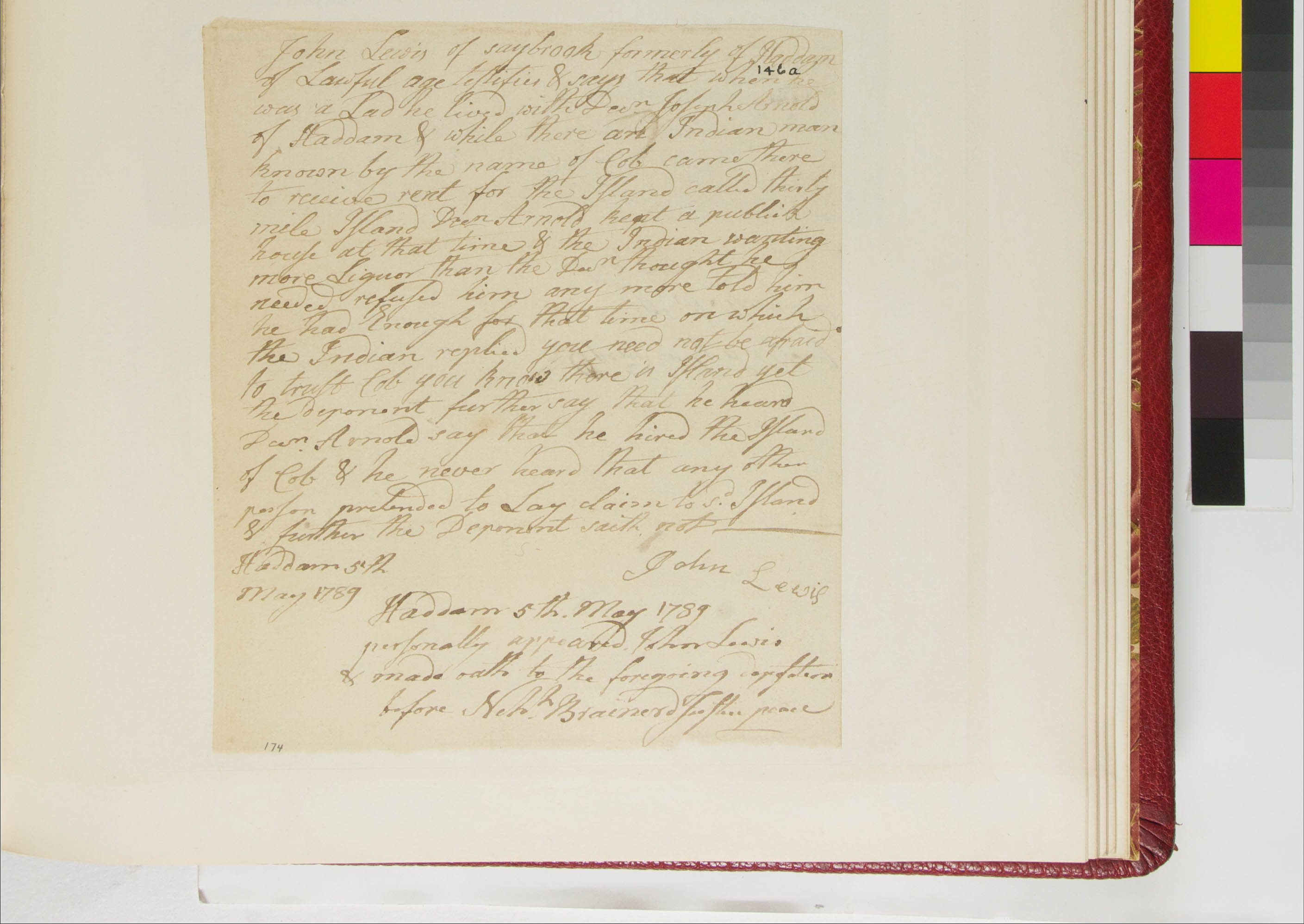 Deposition of John Lewis about Property on an Island in the Connecticut River