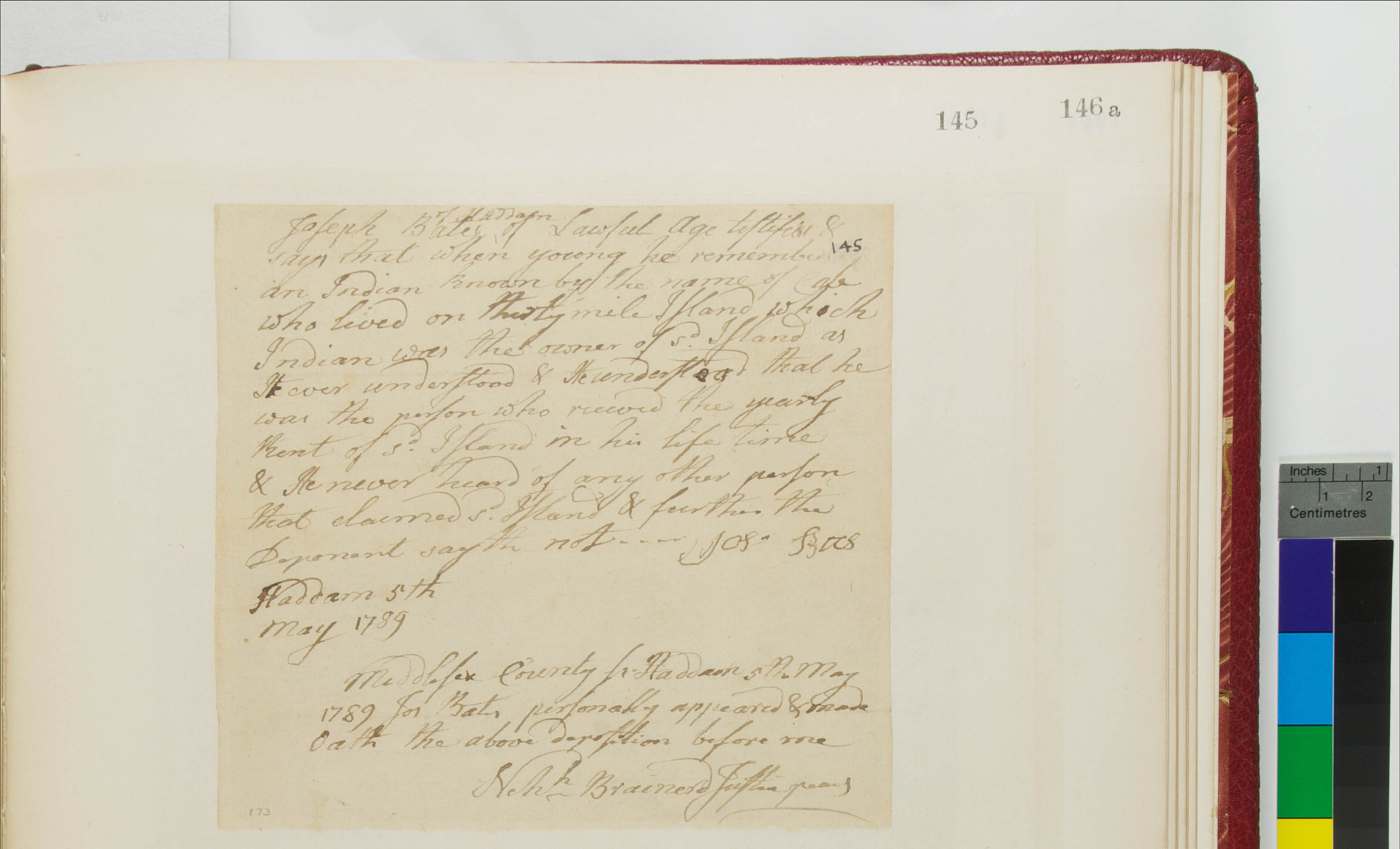 Deposition of Joseph Bates about Property on an Island in the Connecticut River