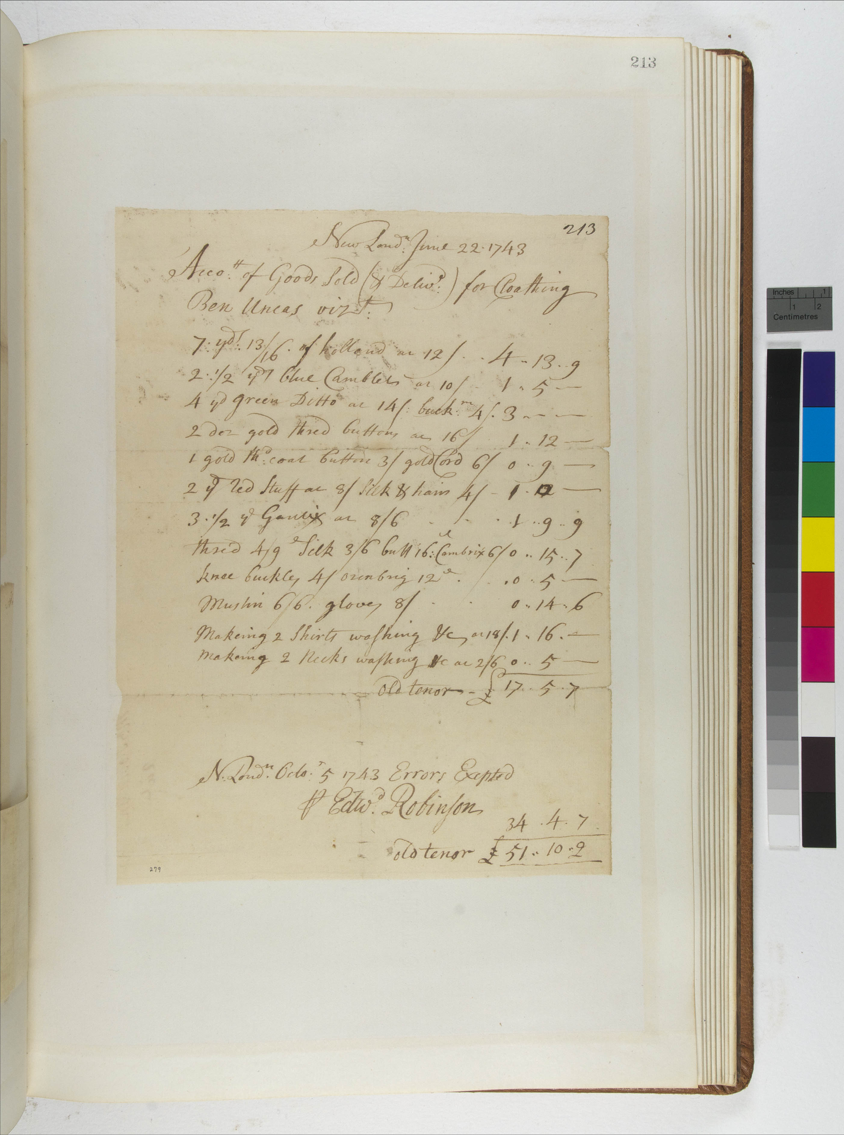 Edward Robinson's Account for Clothing for Ben Uncas