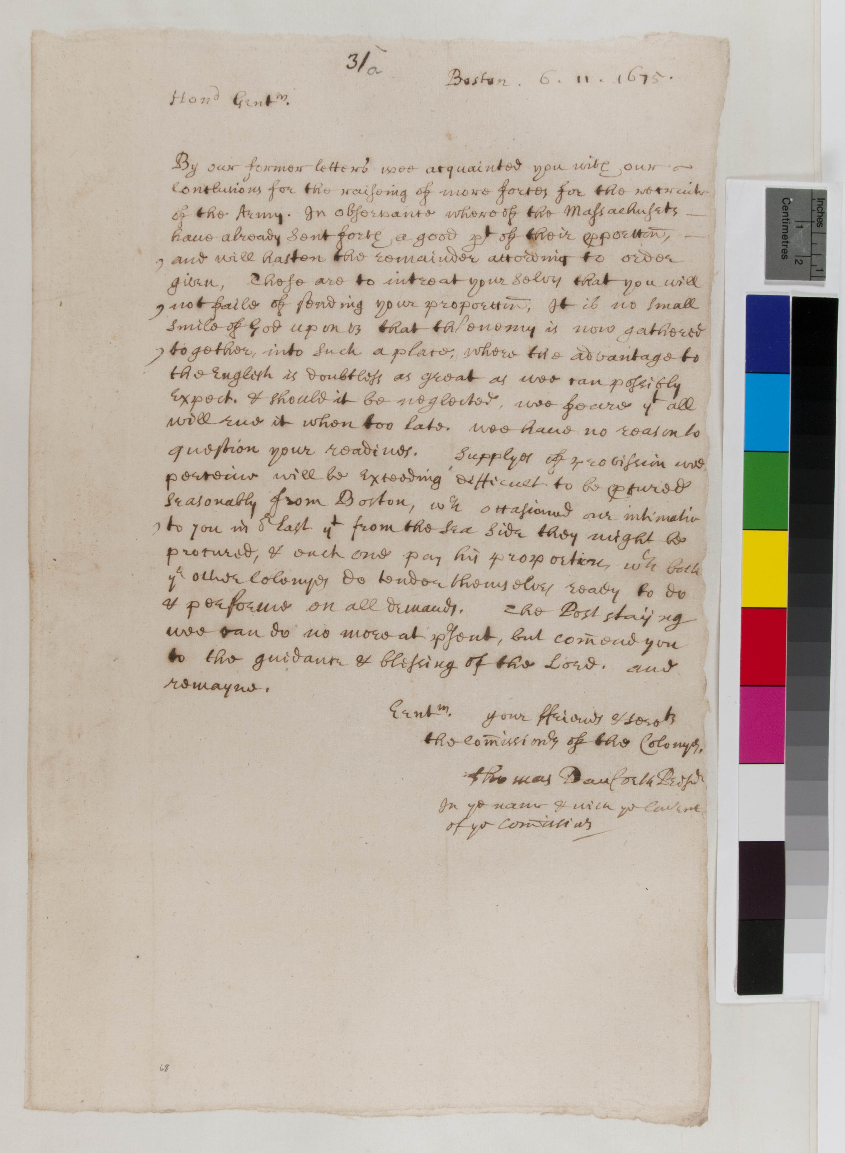 Letter and Order from the Commissioners of the United Colonies to William Leete