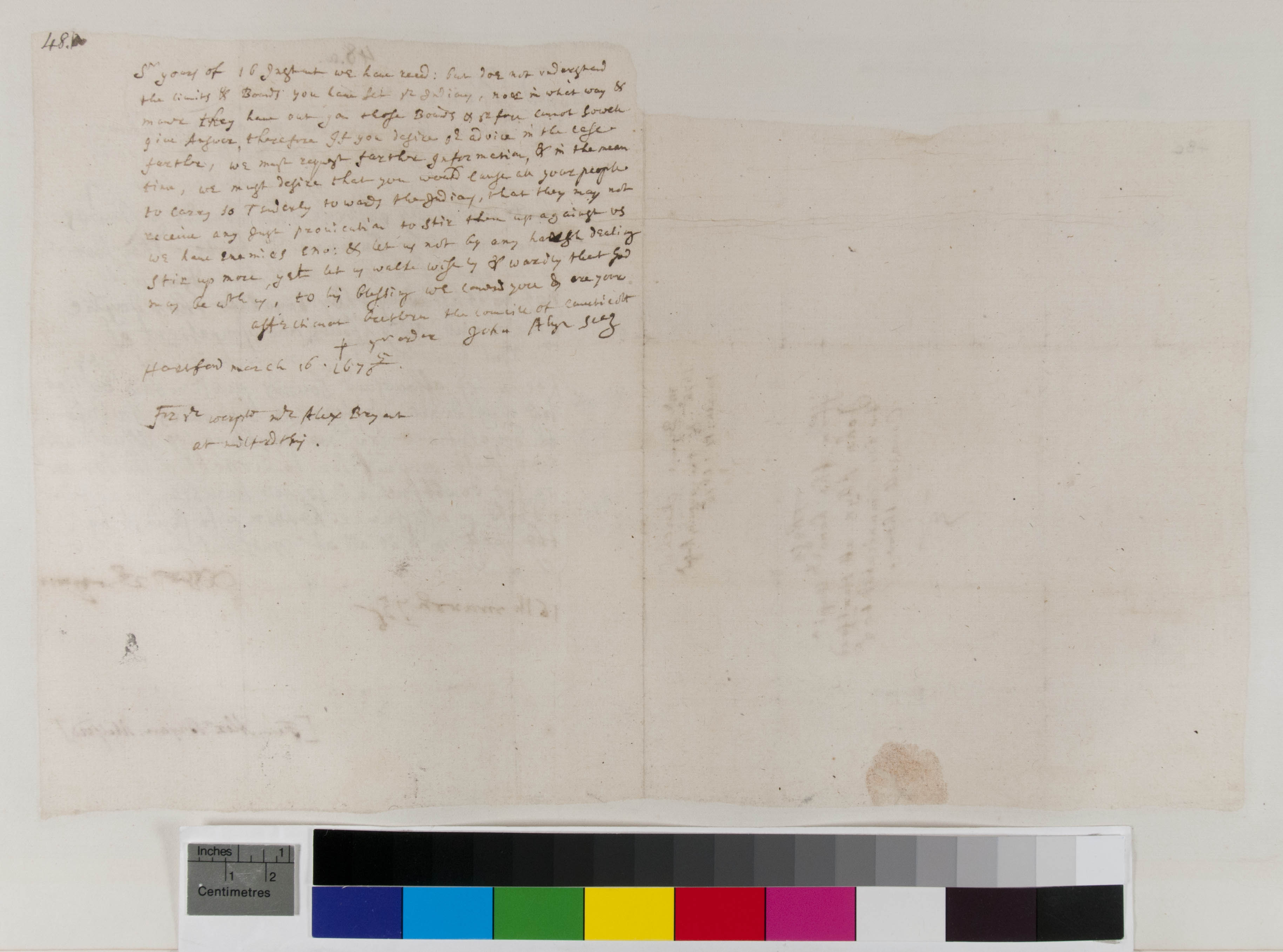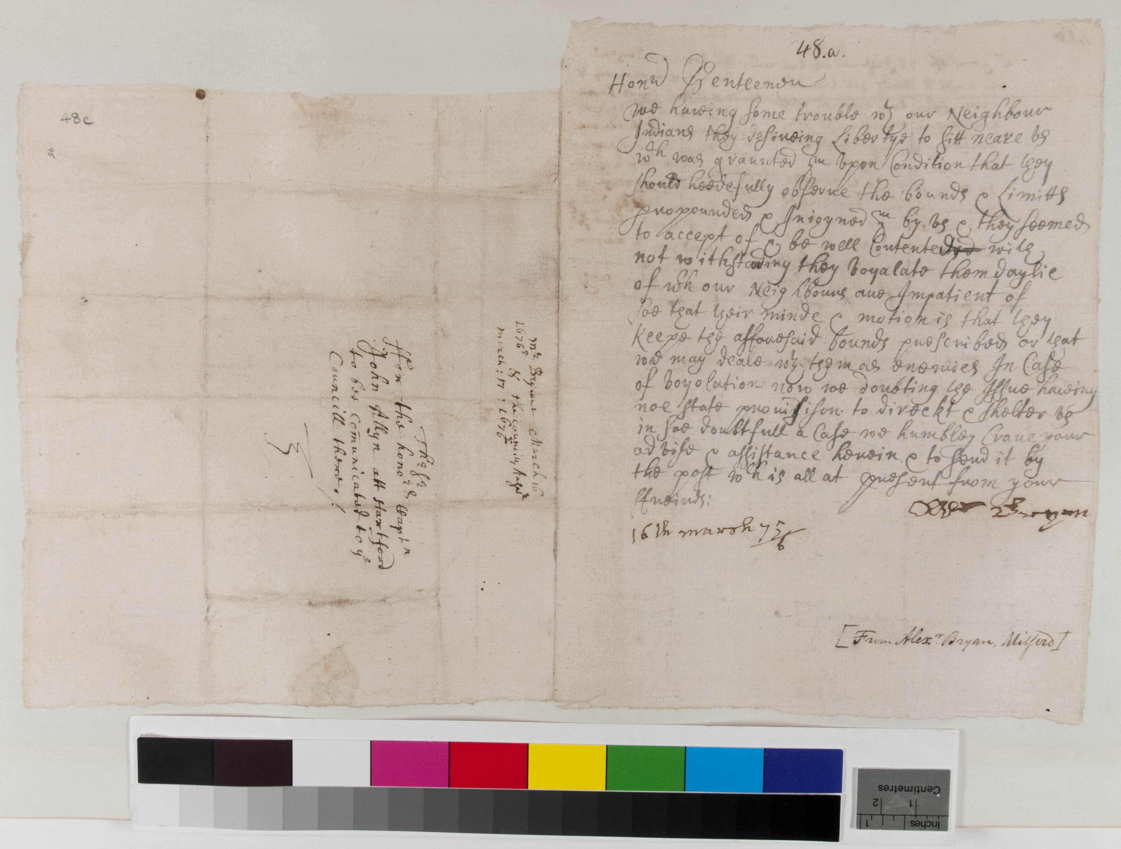 Letter from Alexander Bryan of Milford about Trouble with the Neighboring Indians