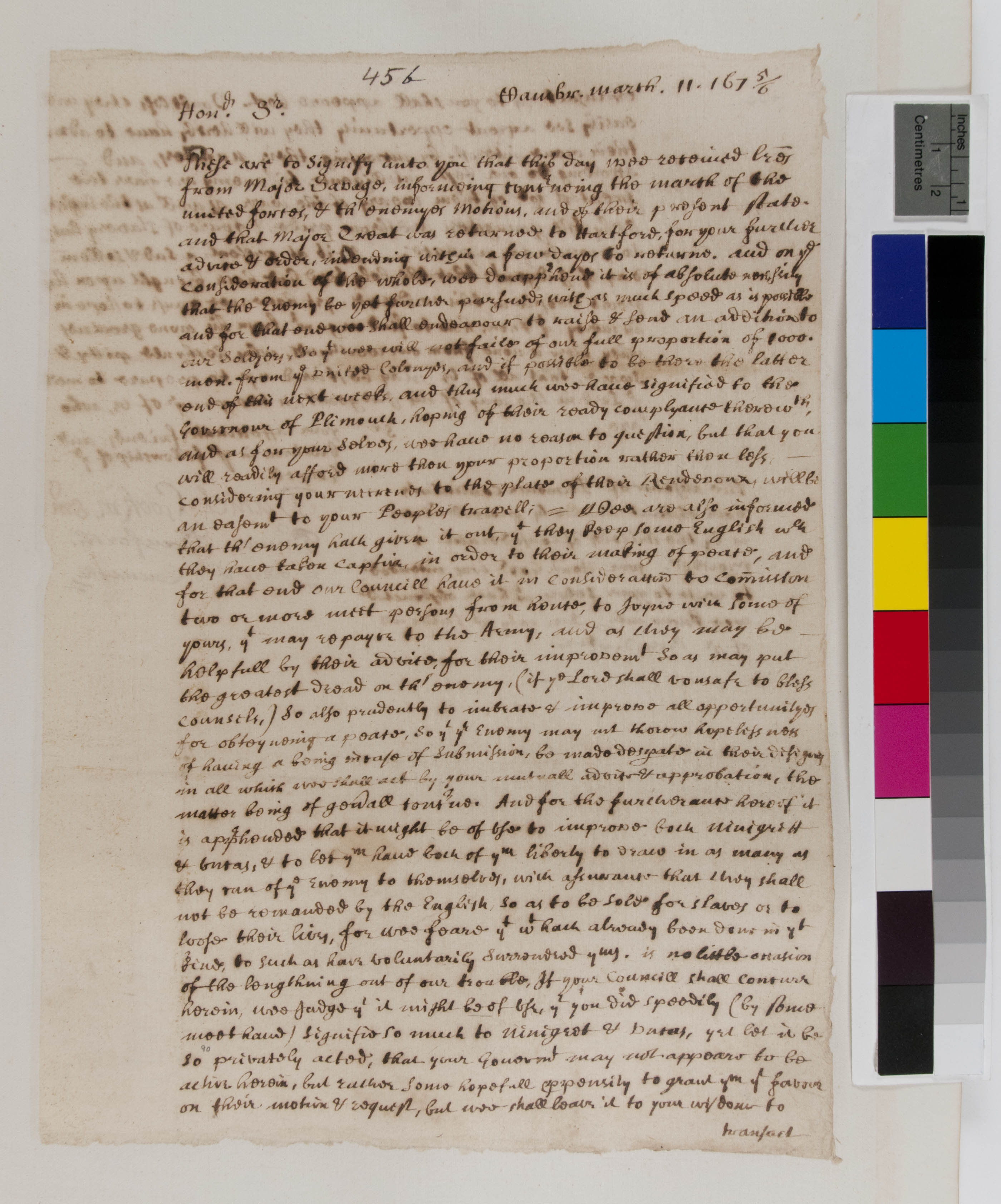 Letter from the Commissioners of Massachusetts concerning the Indian War