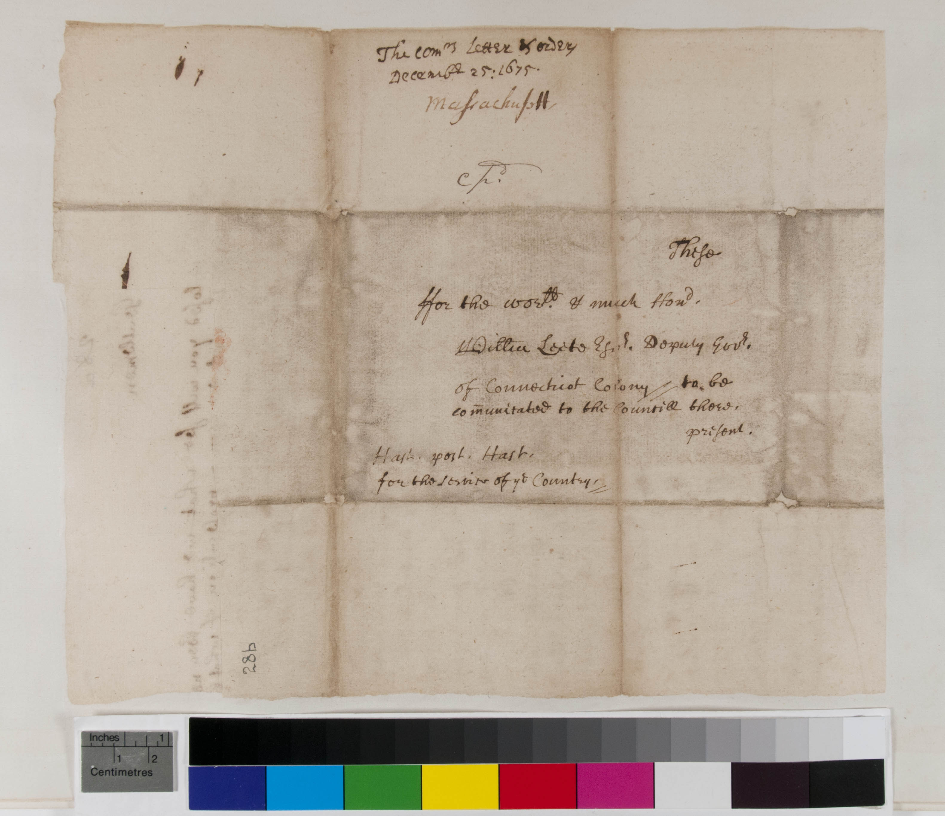 Letter from the Commissioners of the United Colonies to the Deputy Governor and Council of Connecticut relative to the Narragansett War