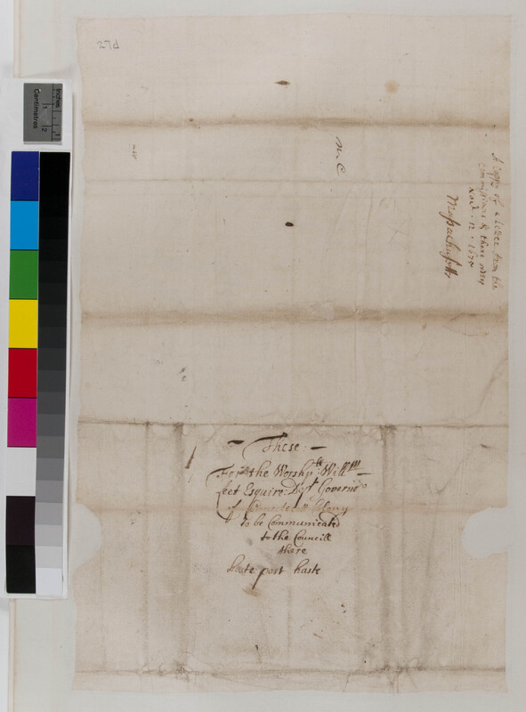 Letter from the Commissioners of the United Colonies to the Deputy Governor and Council of Connecticut relative to the Narragansett War