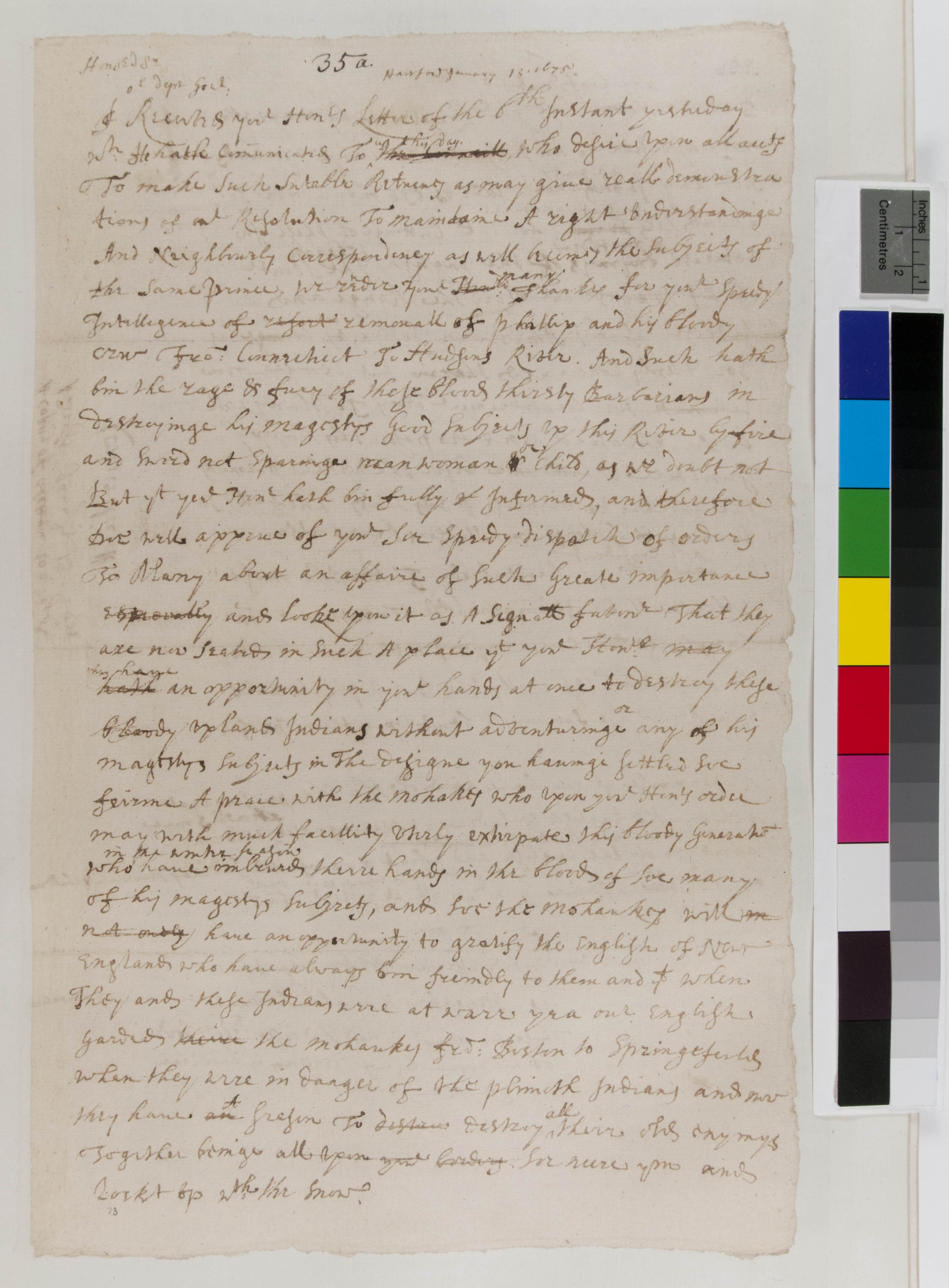 Letter from the Council to Edmond Andros Urging the Destruction of Philip and His Indians by the Mohawk