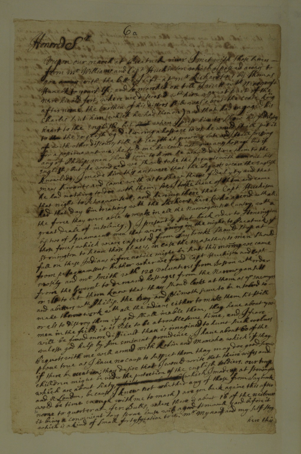 Letter from Wait Winthrop to Governor John Winthrop in regard to Indian Affairs in the Narragansett Country and Elsewhere