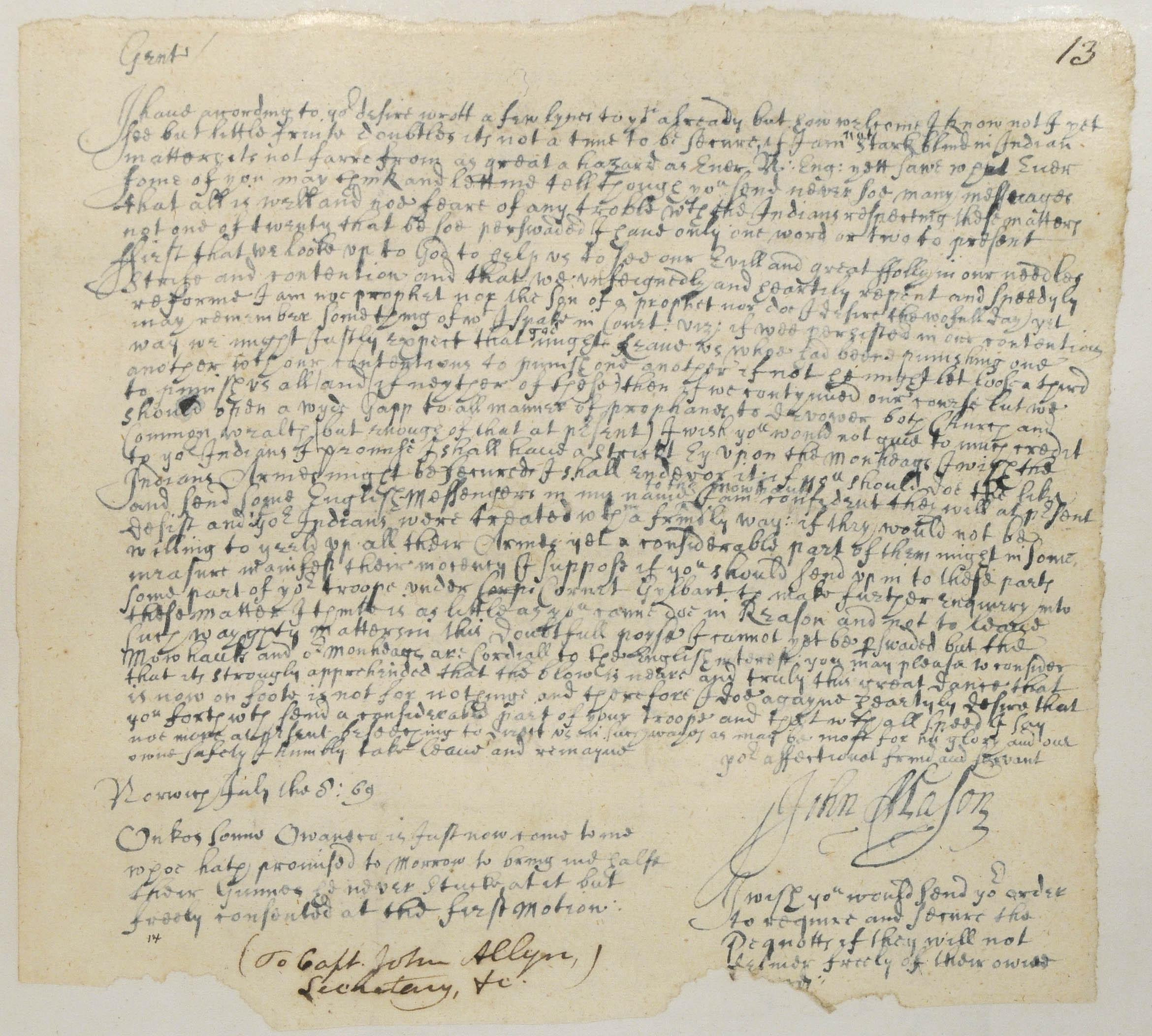Letter of John Mason to John Allyn regarding Indian Conspiracy