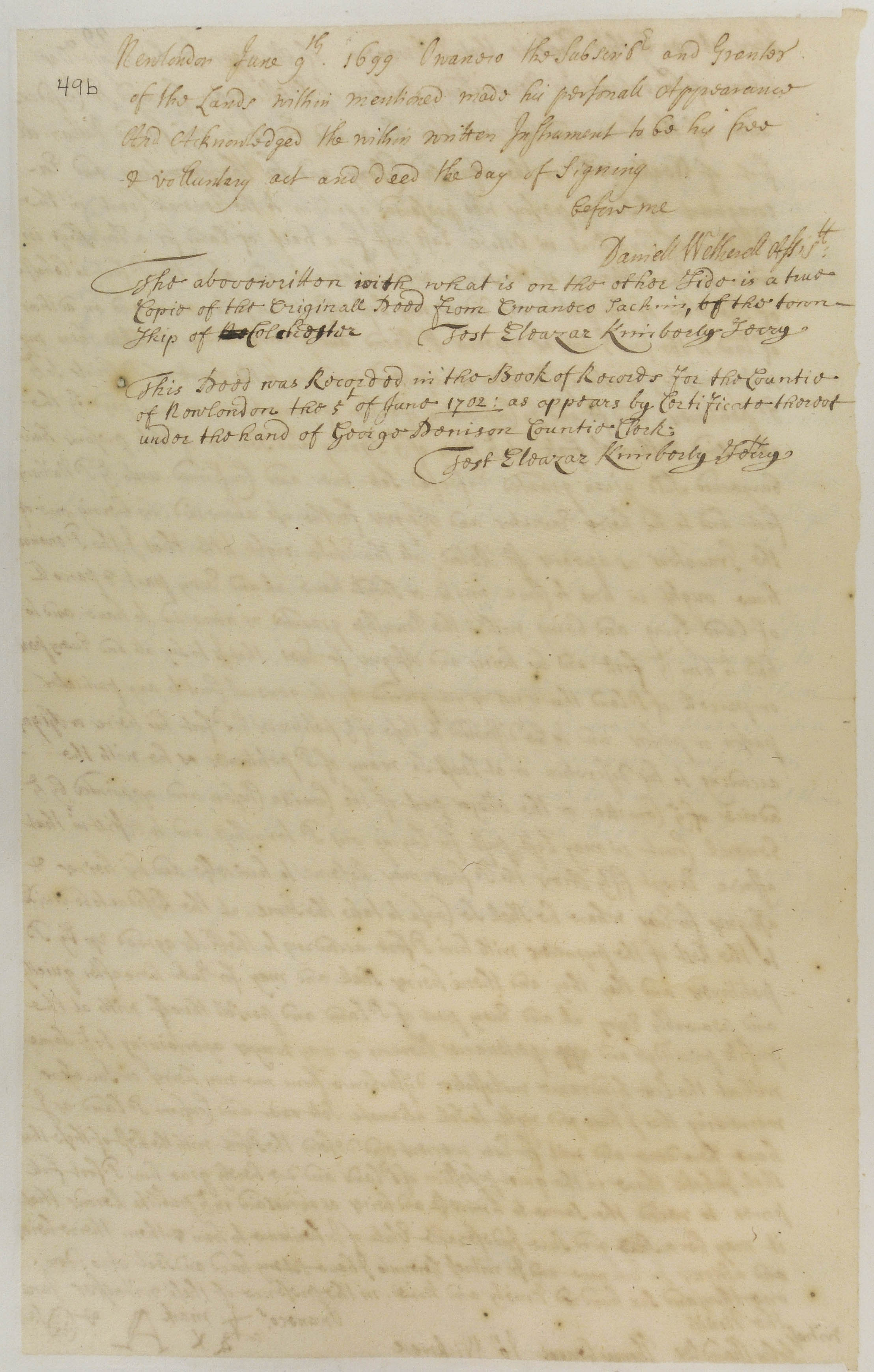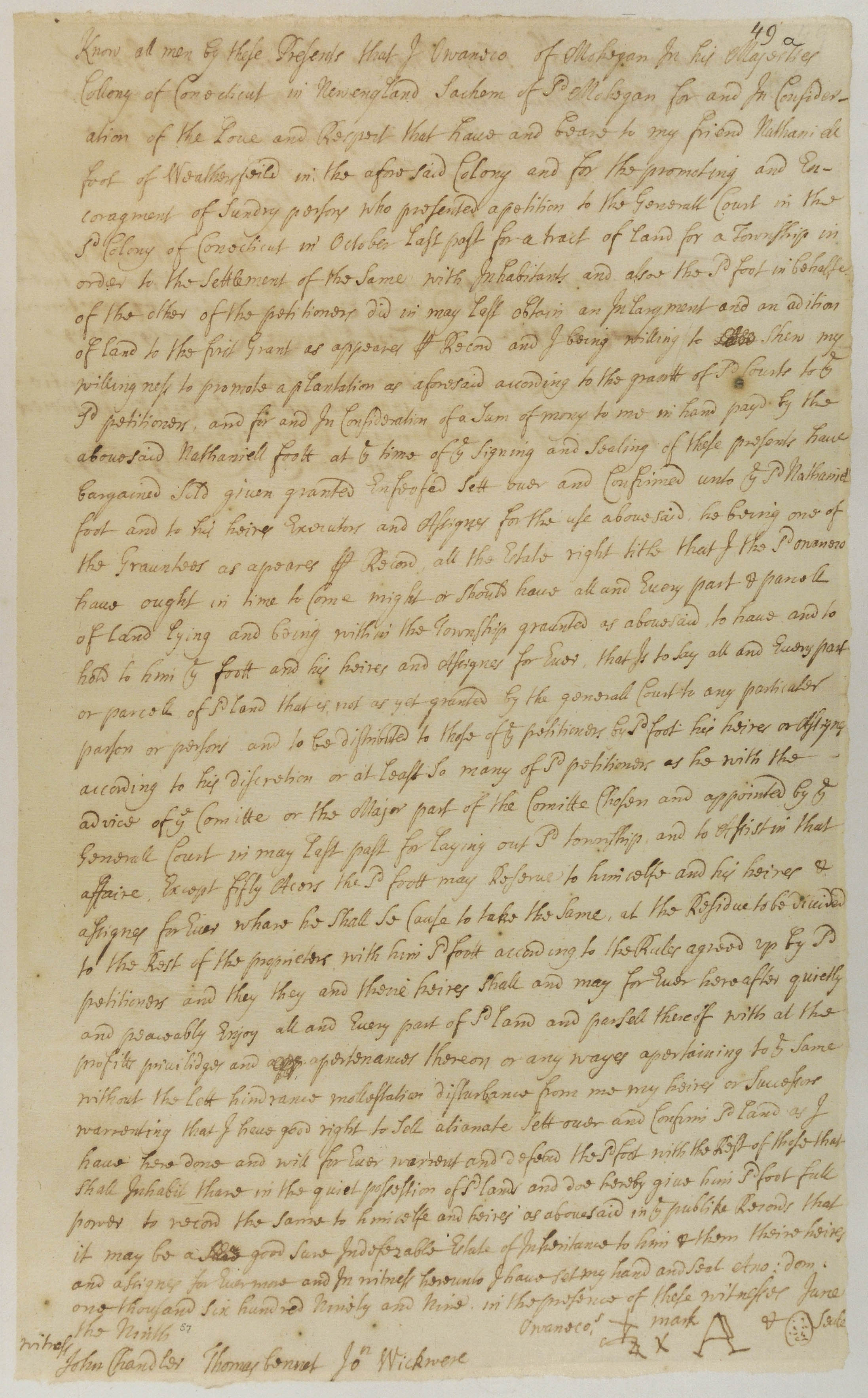 Owaneco's Deed of Colchester to Nathaniel Foote