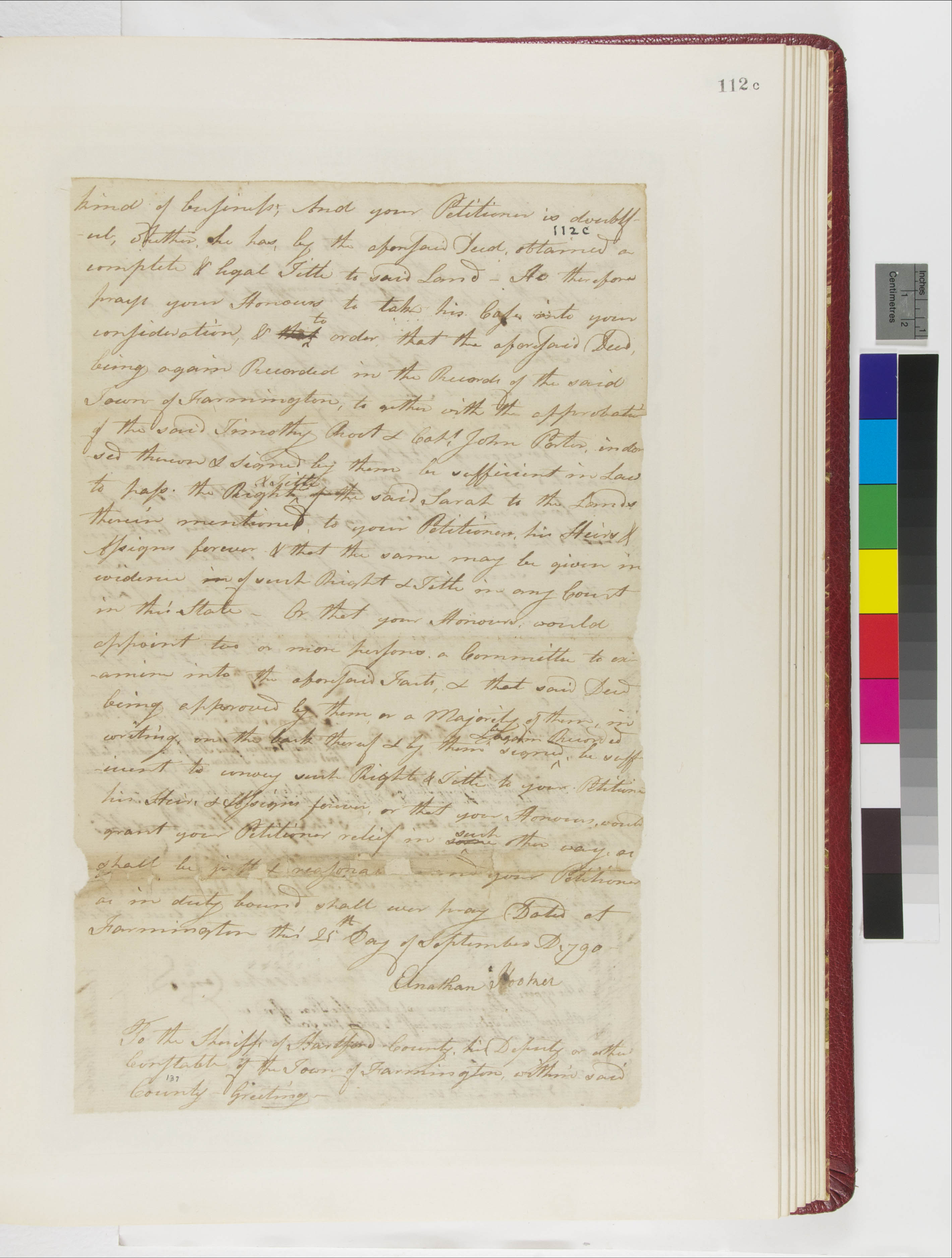 Petition of Elnathan Hooker Regarding His Purchase of the Property of Sarah Wampey