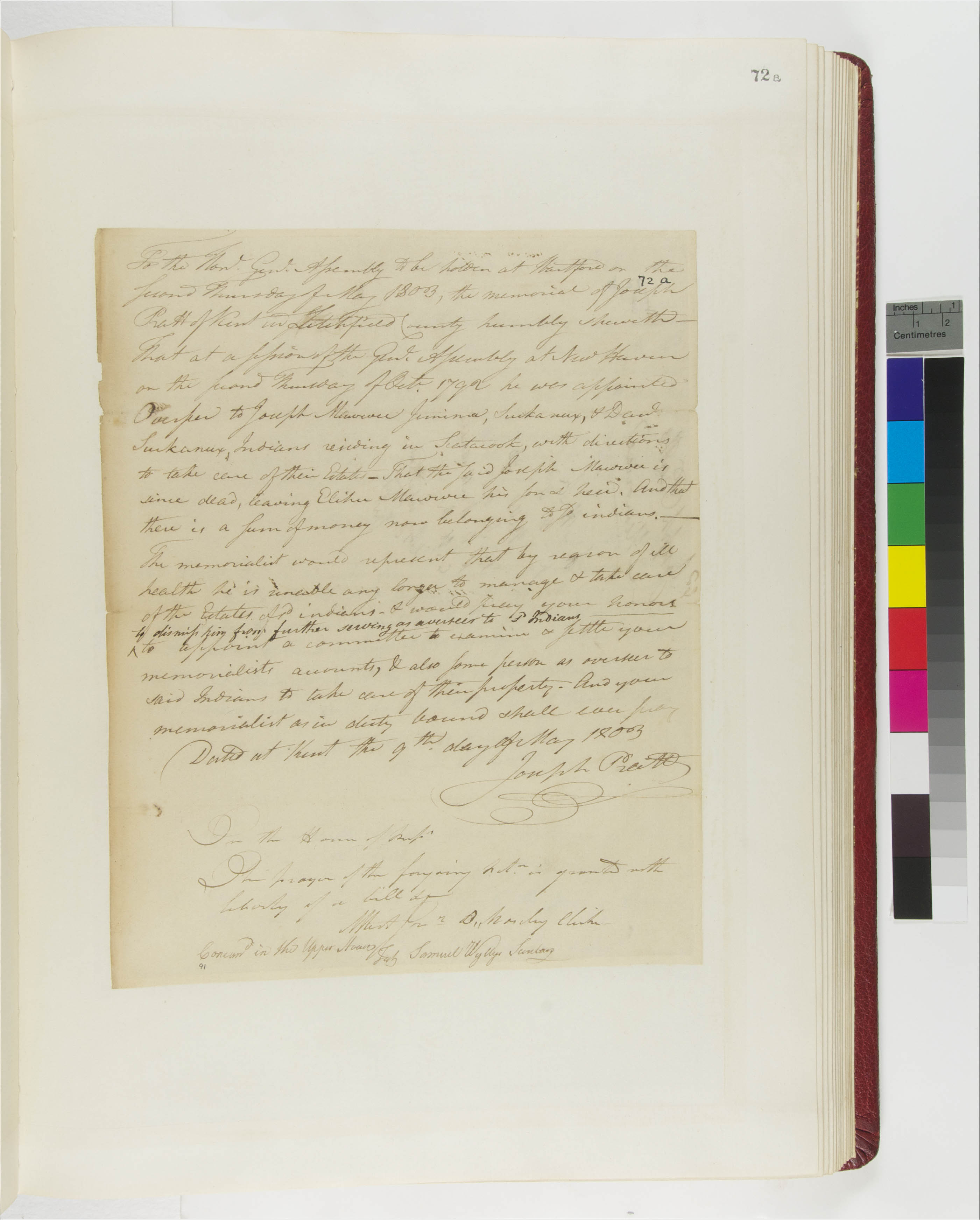 Petition of Joseph Pratt, Requesting His Dismissal as Overseer of Schaghticoke