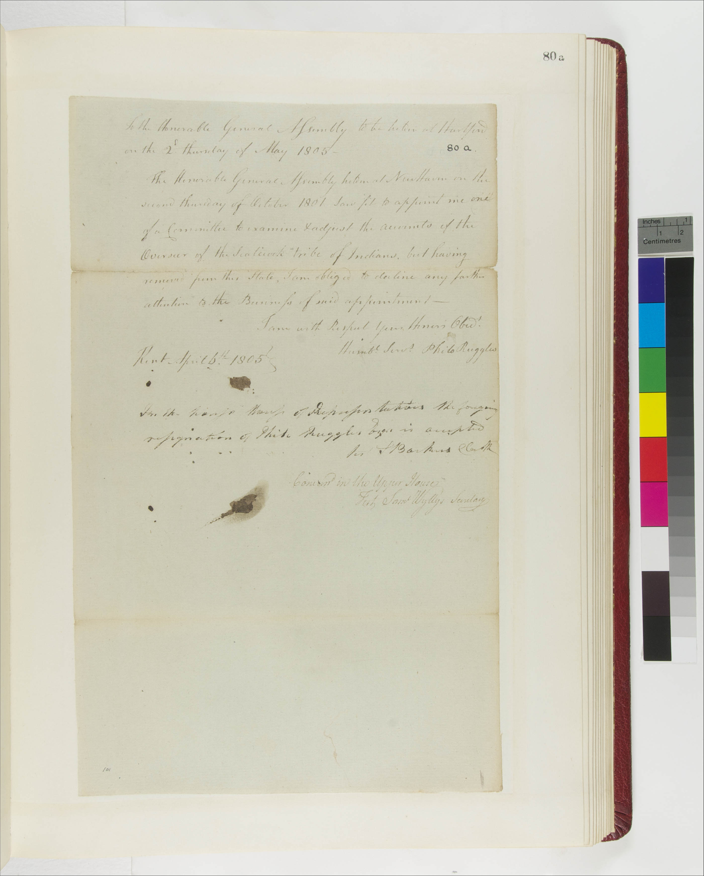 Resignation of Philo Ruggles, Member of Committee on Accounts of the Schaghticoke