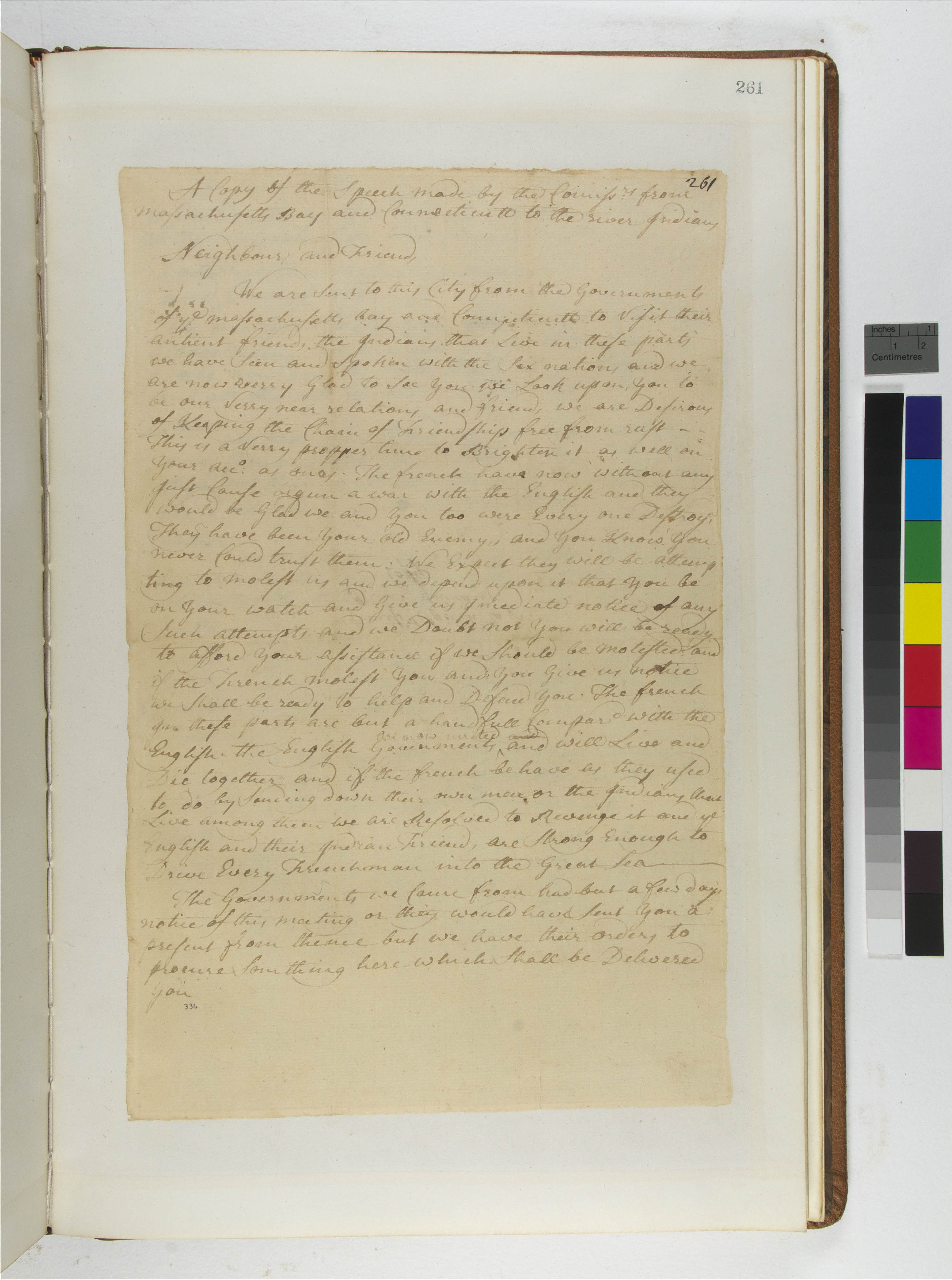 Abstract Ideas -- Friend Indians; Abstract Ideas -- Peace & Friendship; Culture -- Oratory; Culture -- Rites/Ceremonies -- Diplomatic -- Covenant Chain; Diplomacy; Geopolitics -- American Indian Tribes; Geopolitics -- Canada/New France; Geopolitics -- Canadian Native Allies; Geopolitics -- Great Britain; Government -- Colonial -- Colony of Connecticut -- Agencies -- Diplomacy; Government -- Colonial -- Province of Massachusetts Bay -- Agencies -- Diplomacy; Government -- Tribal -- River Indians -- Diplomacy; Law -- Diplomacy -- Covenant Chain -- Renewal; Law -- Diplomacy -- Covenant Chain; Military -- Indian Allies; Relations -- Colonial Affairs; Relations -- Imperial Affairs; Relations -- Inter-Tribal Affairs -- Alliance; Repository -- Connecticut State Library; Tribes/Communities -- River Indians; Tribes/Communities -- Six Nations; YIPP -- Colony of Connecticut Collection, 1603-1783; YIPP -- Province of Massachusetts Collection, 1684-1783