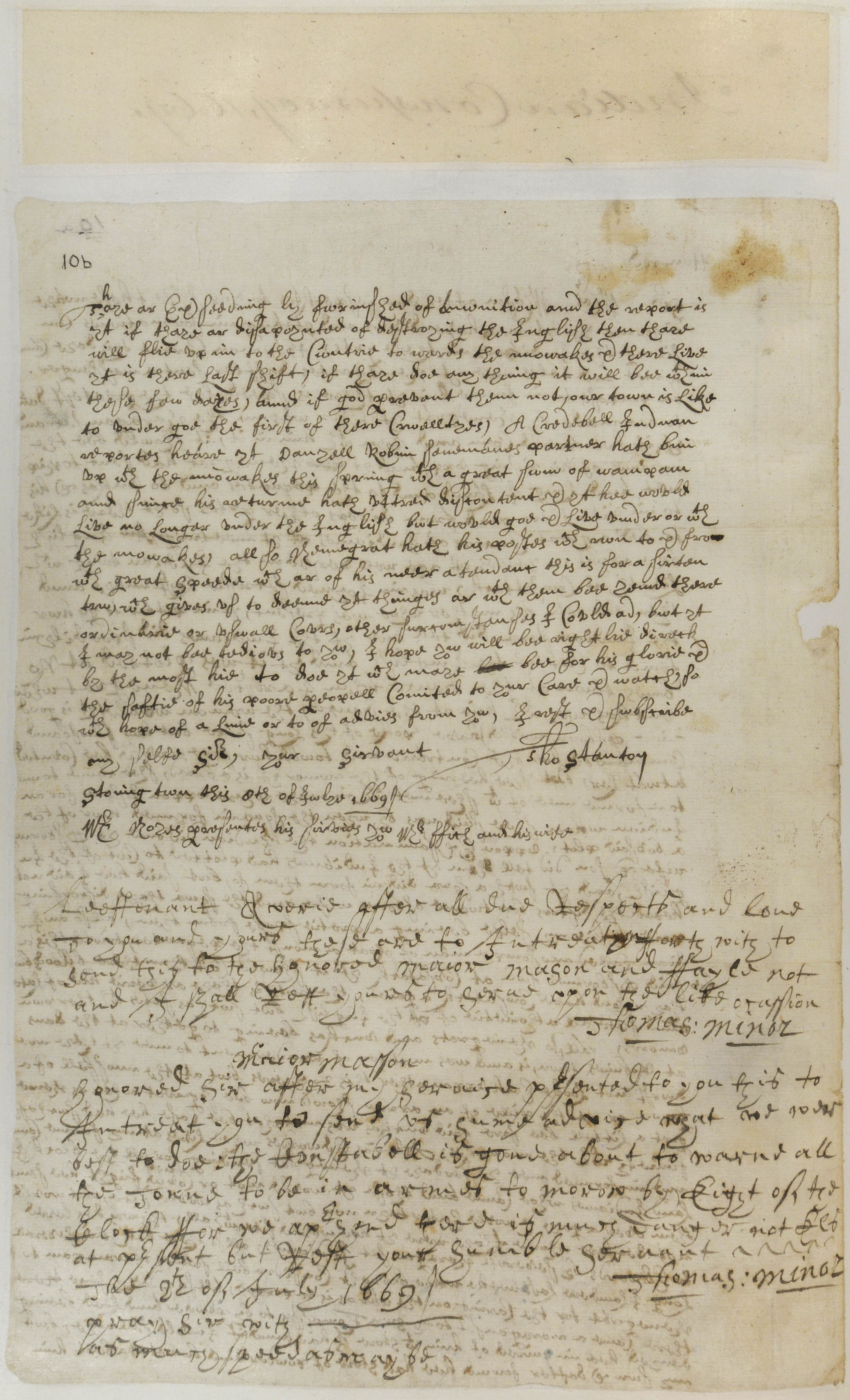 Allyn, John, 1631-1696 (Recipient); Avery, James, 1620-1700 (Mentioned within document); Cassasinamon, Robin, -1692 (Mentioned within document); Daniel, -1694 (Mentioned within document); Edwards, Thomas, 1640-1698 (Mentioned within document); Fitch, James, 1622-1702 (Mentioned within document); Garrett, Harman, -1678 (Mentioned within document); Mason, John, 1600-1672 (Author); Mason, Priscilla (Mentioned within document); Minor, Thomas, 1608-1690 (Author); Mosup (Mentioned within document); Ninigret, -1677 (Mentioned within document); Noyes, James, 1640-1719 (Mentioned within document); Osborne, Ephraim, 1657-1734 (Mentioned within document); Osborne, John, -1676 (Mentioned within document); Osborne, Mary Knight, 1620-1674 (Mentioned within document); Stanton, Thomas, 1638-1718 (Mentioned within document); Uncas, 1590-1683 (Mentioned within document)